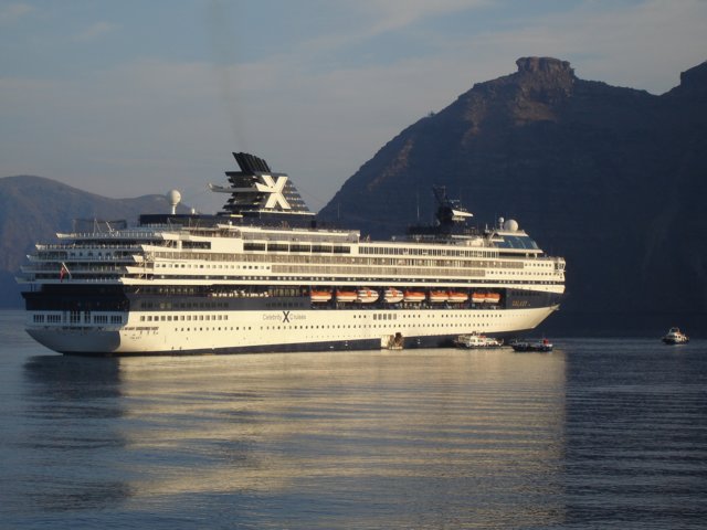 We had not seen a cruise ship in the Caldera in 2002 so this came as somewhat of a surprise. over the course of a couple of days we learned a lot more about the economic impact of cruising in the Mediterranean on the life blood of the greek islands. these ships can hold about 2,000 to 3000 tourists!