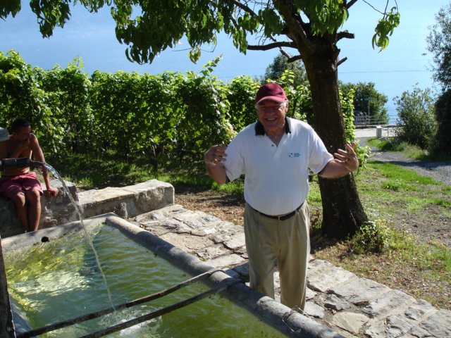 the garden and waterfalls in the middle of Lavaux
