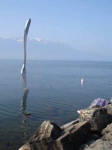 How often do you see a fork in a lake? this was erected for the temporary exhibition in the Alimentarium where Greg and I visited on April 7.