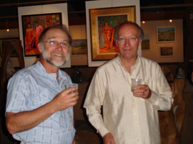 the paintings surround the tables laden with food and wine
