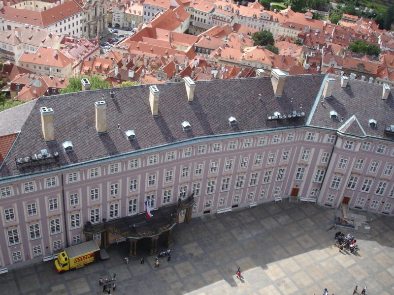 view from the St. Vitus tower over the castle's inner courtyard