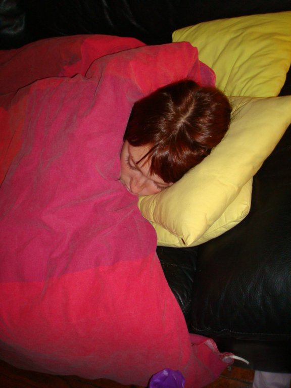 Brigitte was beginning to feel sick so she laid down and slept in the living room