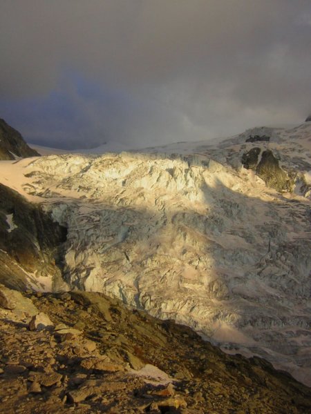 Exposed ice and crevasses