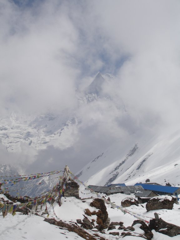looking back at the camp from the ridge (morraine) above the glacier