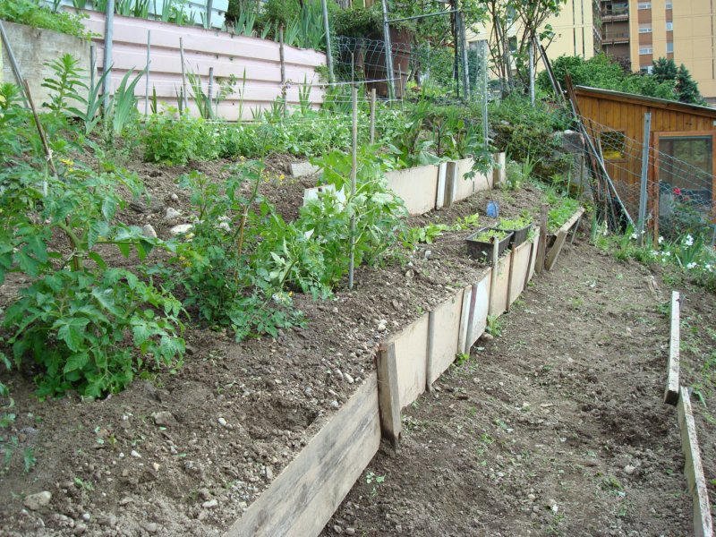 Herbs, flowers and the snap peas in the background now have something to climb on!