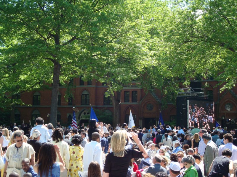waiting in the sun while the thousands of graduates come in their black robes and hats