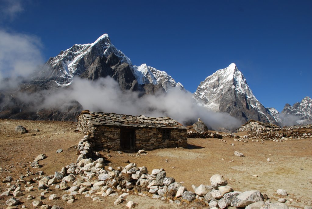 Cho La is at the end of this valley, Everest is up the debris flow on the right