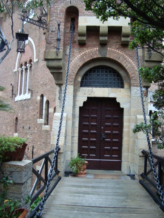 a guard dog at the gate of a castle!