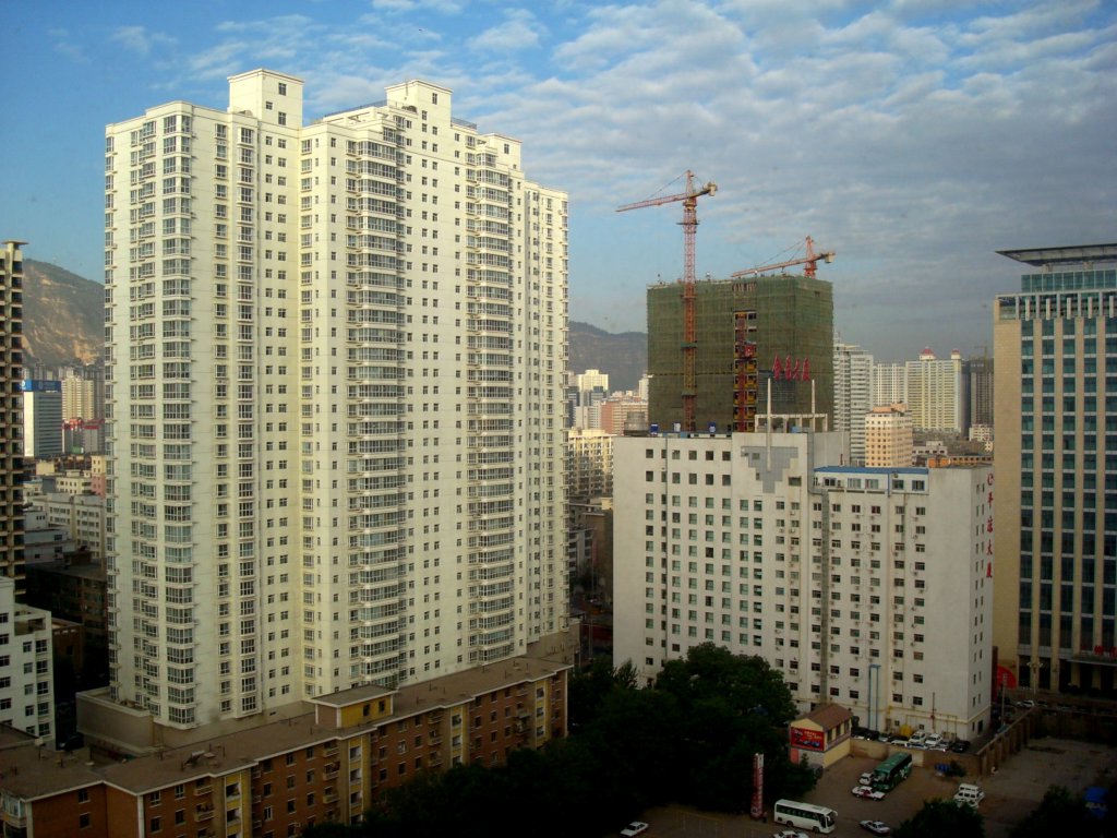 from the taxi as we are heading into Langhzou city center