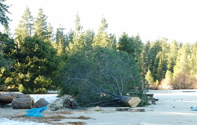 Our picnic table (and restrooms)
