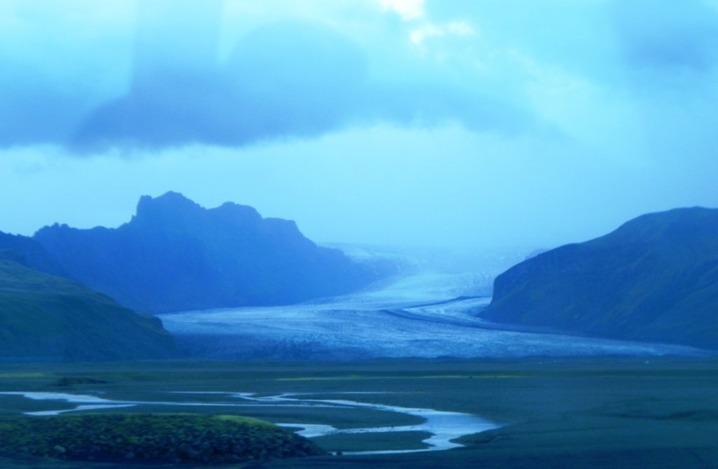 Walking up the plain toward the glacier coming down from the ice cap.