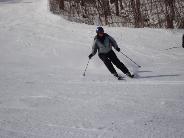 Skiing down beneath the Skye Peak quad mid-day Monday 20 Feb 2012