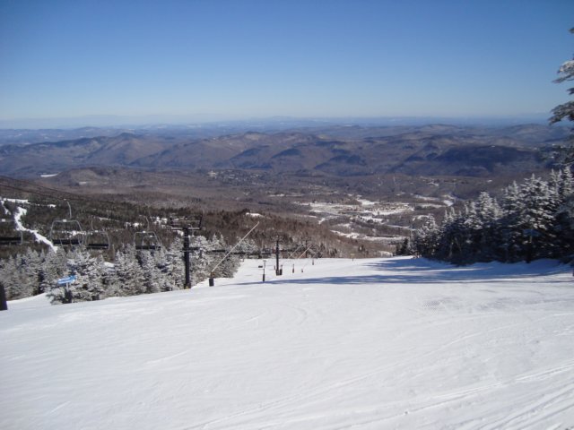 We could see the full length of the Green Mountains from Mansfield in the north to Mount Snow in the south. Just to the left of Stratton, another favorite ski area of my youth, is the north "face", let's say, slope of Mount Snow where I skied with Vivi in 2008.
