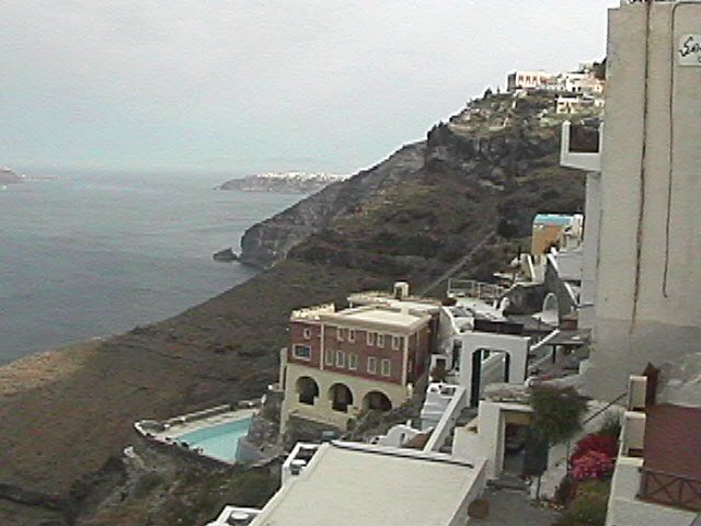 One of the memorable features was our visit was the place we called home on Santorini, the Kykladonisia Rooms and Apartments. It took some a concerted effort to find the place once we were on the island, but once we did, we were delighted with the accommodations and the location relative to the heart of Thira. Greg and I stayed in this room . This was Dominique and Antoine's room . The girls had quite a nice and large room with a loft but they preferred to spend their time in the pool.
