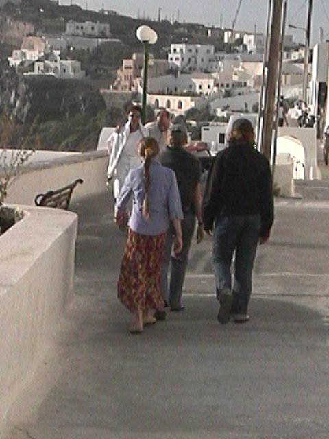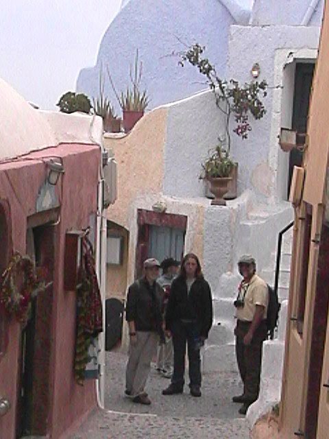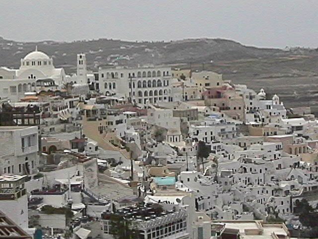 Although it was not old enough to be in all the guidebooks and I don't have photos of the displays, we highly recommend visiting the New Museum of Fira, which opened in March 2000. It is the second largest pre-historical museum in Greece and has excellent text as well as audio explanations. It exhibits frescoes from Akrotiri and the first gold found in the Cyclades.