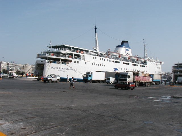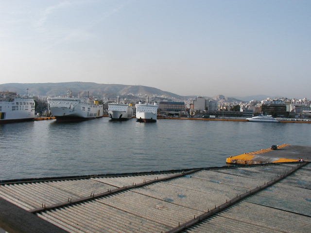 The port of Piraeus is something of a giant in its own right. There were a dozen huge ocean-going cruise ships. We got some supplies at a local grocery store and market, met our luggage and boarded the [does anyone know the name of the boat?]. We took the nine hour overnight ride for Santorini.