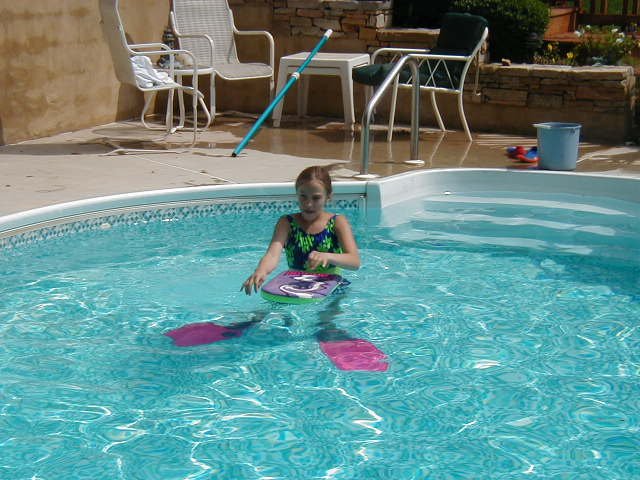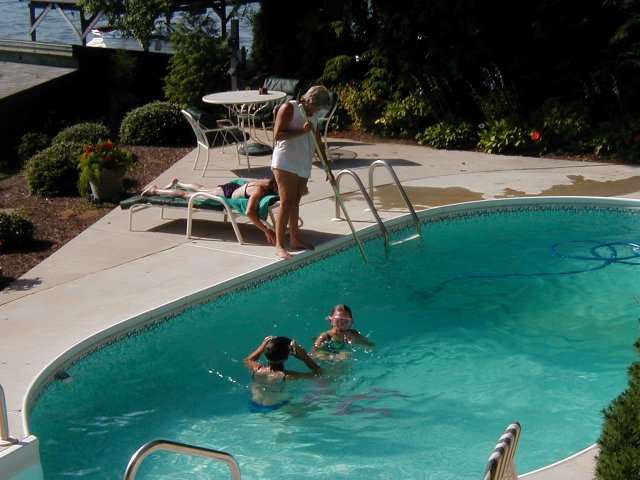 | Brigitte in Kathy and Kelly swimingpool | On the next morning she went out with Claire | And even docked the boat on her own. She is ready to solo on the supersunfish |