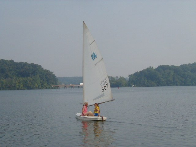 She went sailing once holding the tiller, the next time she handled both the main and the tiller