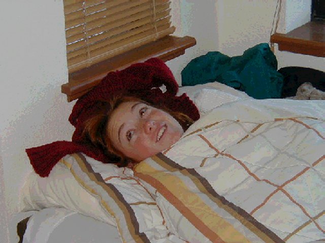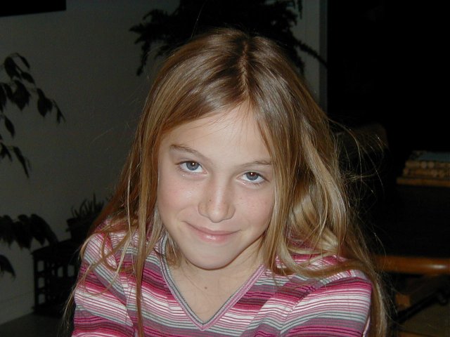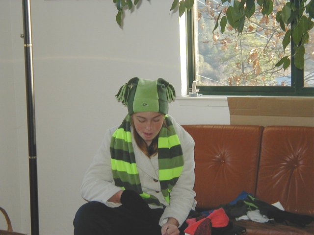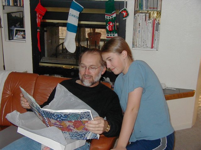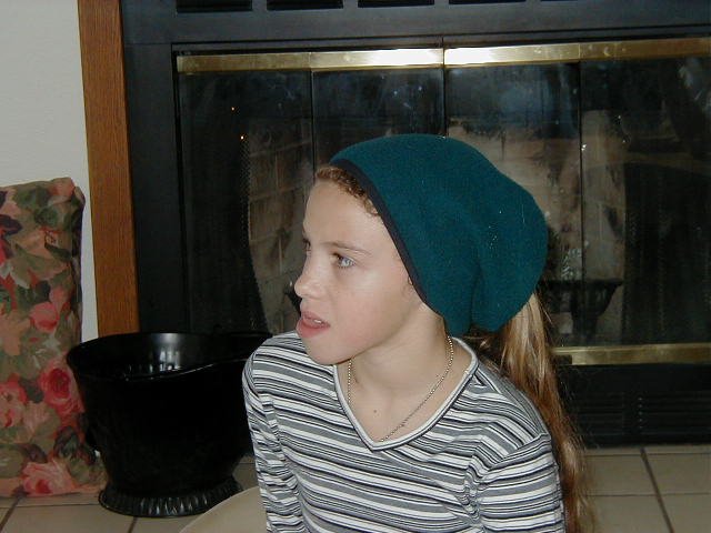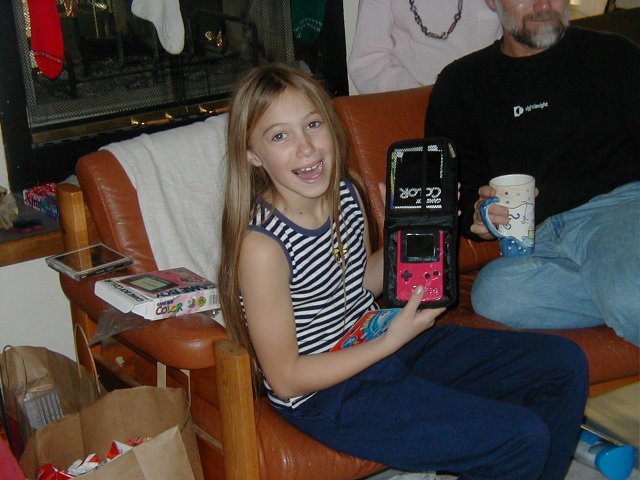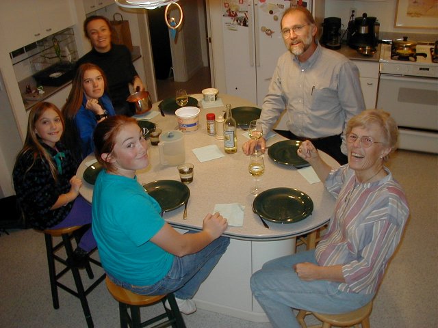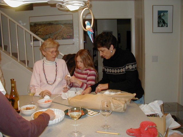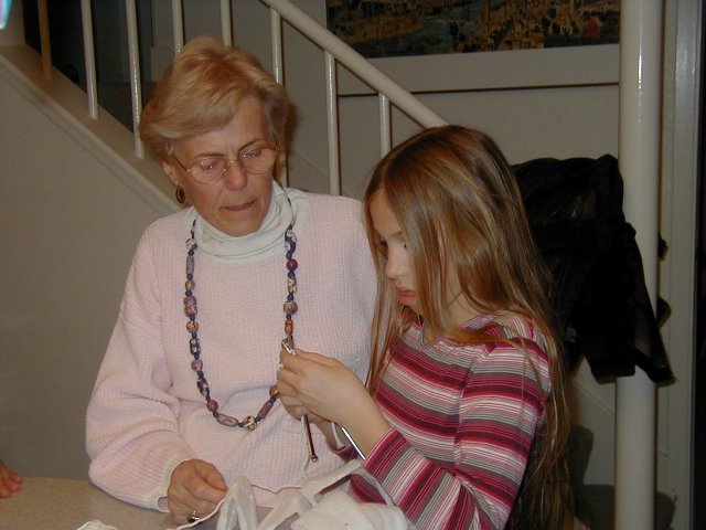 | A very nice picture of Brigitte | Brigitte learning how to knit | Cindy opening a present | Discussion after supper |