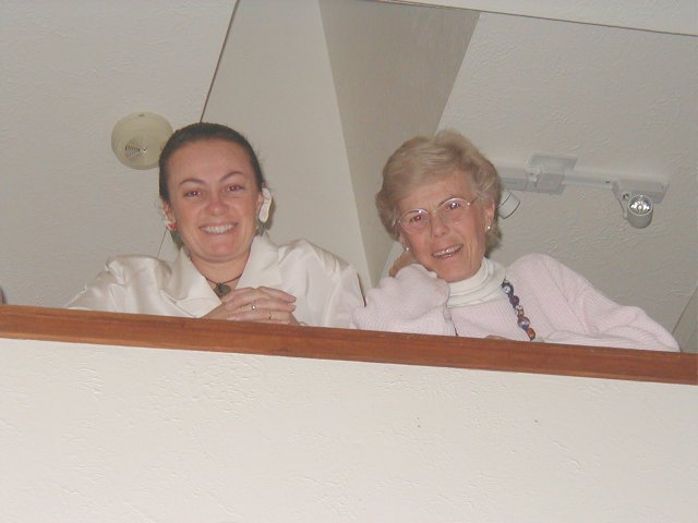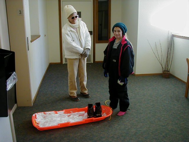 | Nikki and Greg on the lift | Brigitte brings back some icicles | Brigitte with Christine | Dinner is ready |
