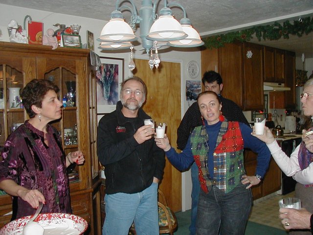 | The Egg Nog was good!! | Tucker was really excited. | Nikki had brought a book just in case. | Discussing history of El Dorado County |