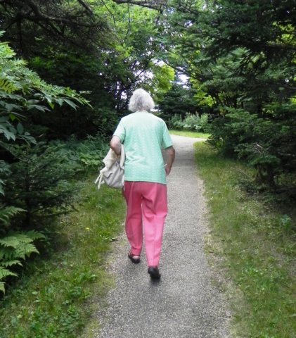 Mom hiking around the summit