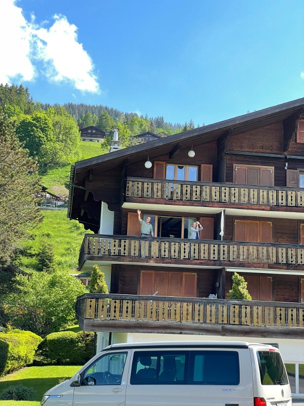 13 June La Gruyere, Rickermanns on Balcony