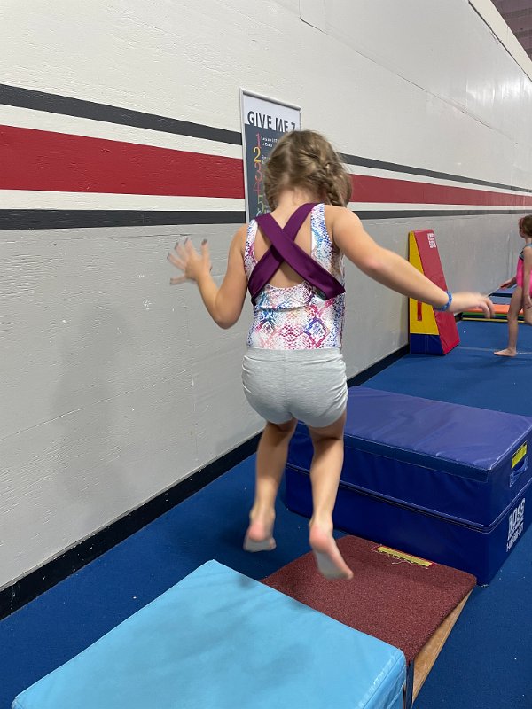 In this move, she had to jump backward and up ont the pad