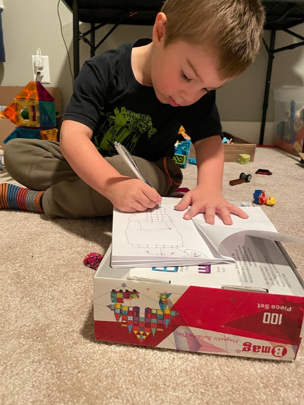 Liam illustrating while listening to Val. Very focused. Will he write his memoirs?