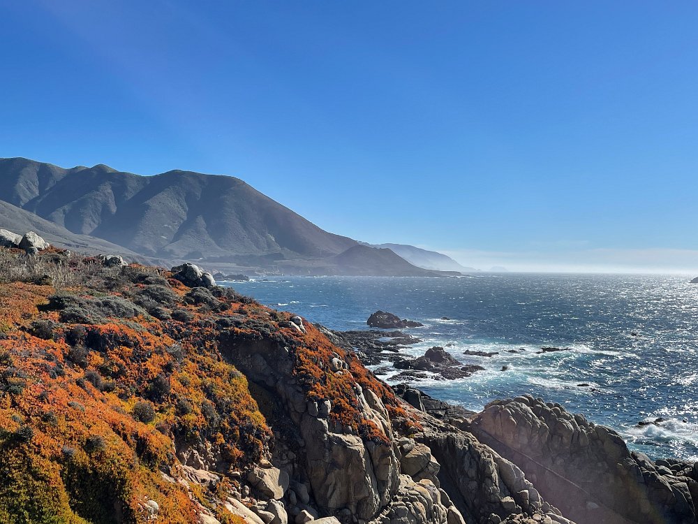 Rocks, sun, mountains and ocean