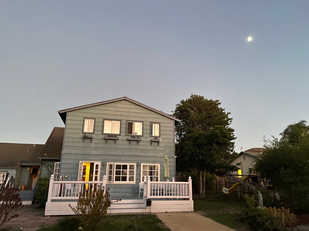 Late afternoon the moon rises while the coals are getting hot
