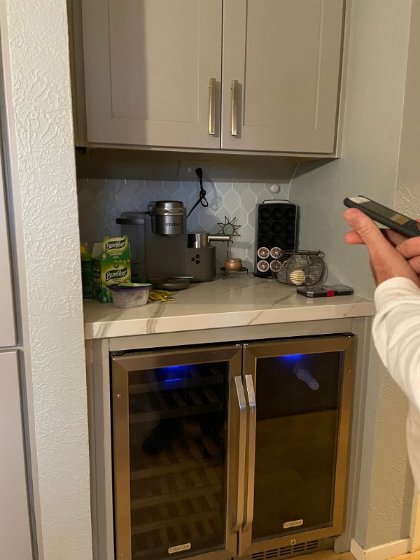 Bunny feeding station is now a wine bar/cooler and coffee station. We can get behind that!