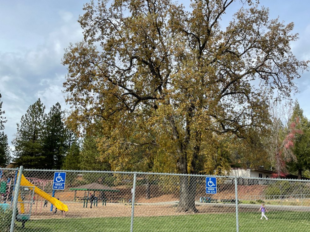 Gold Oak School with big oak