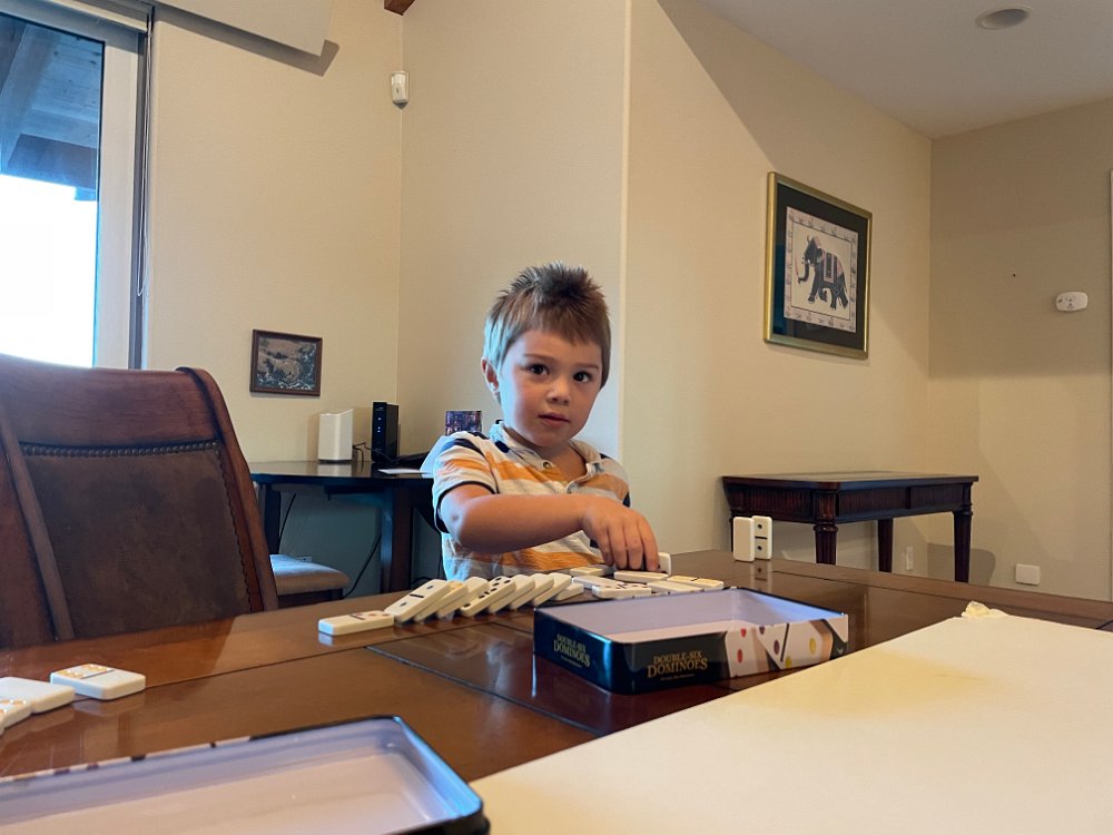Liam and Gampa figure out what's fun about dominos