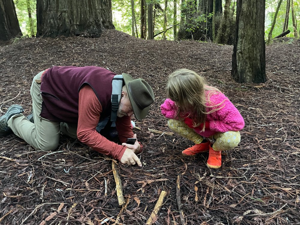 Frank helping Val examine some mushrooms