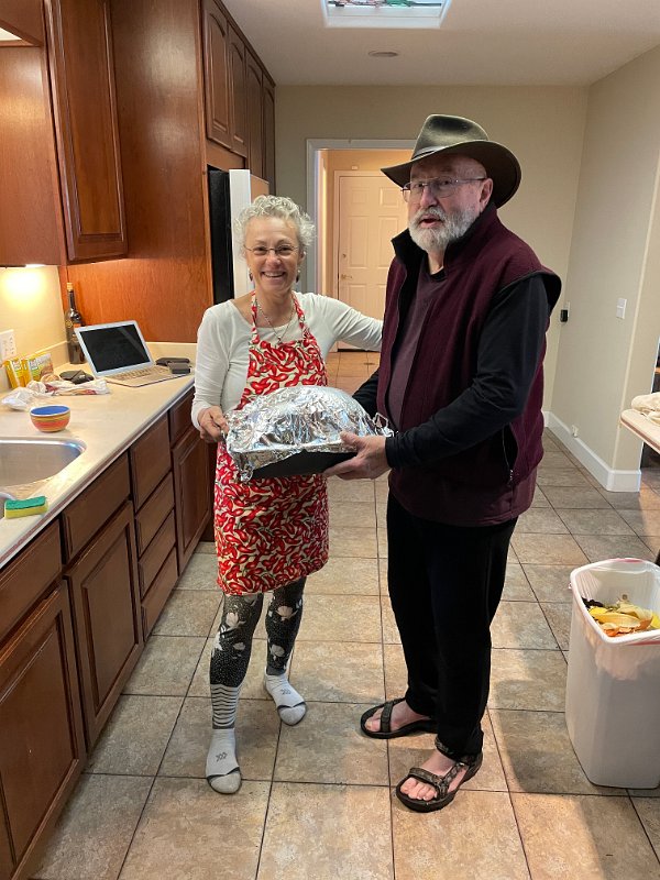 Frank delivered the turkey, brined and ready to stuff