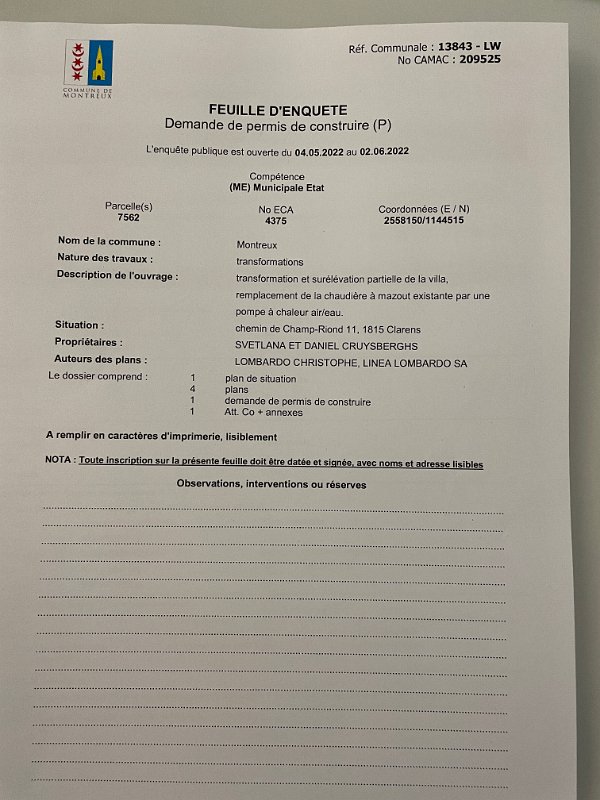 Chemin de Champ Riond 11 - Rennovation Plans