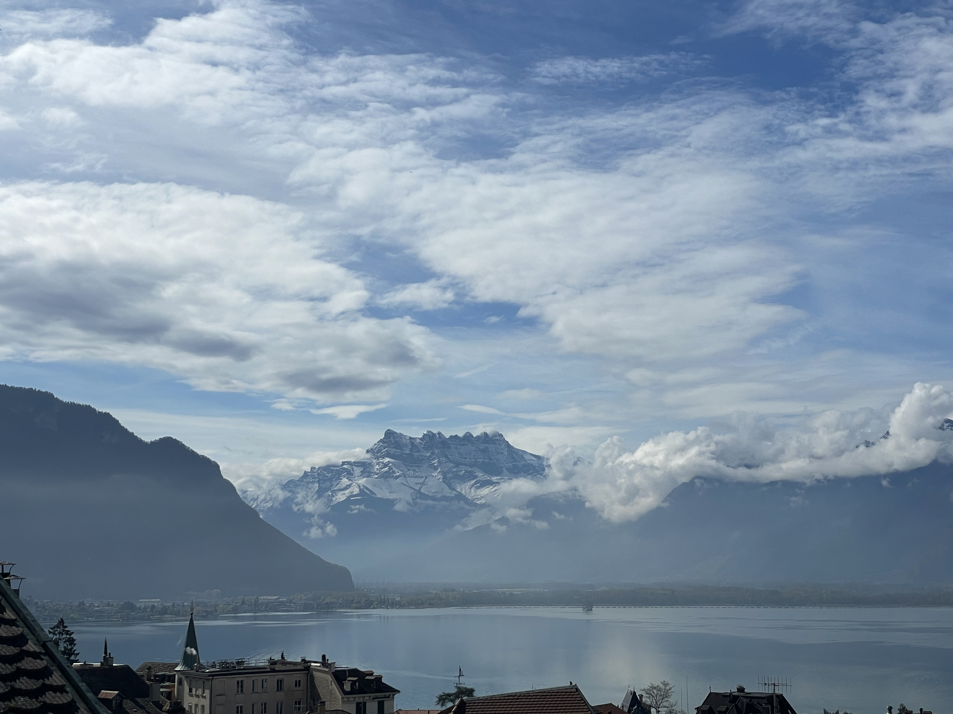 Meanwhile, it's still unsettled over the lake and Dents du Midi