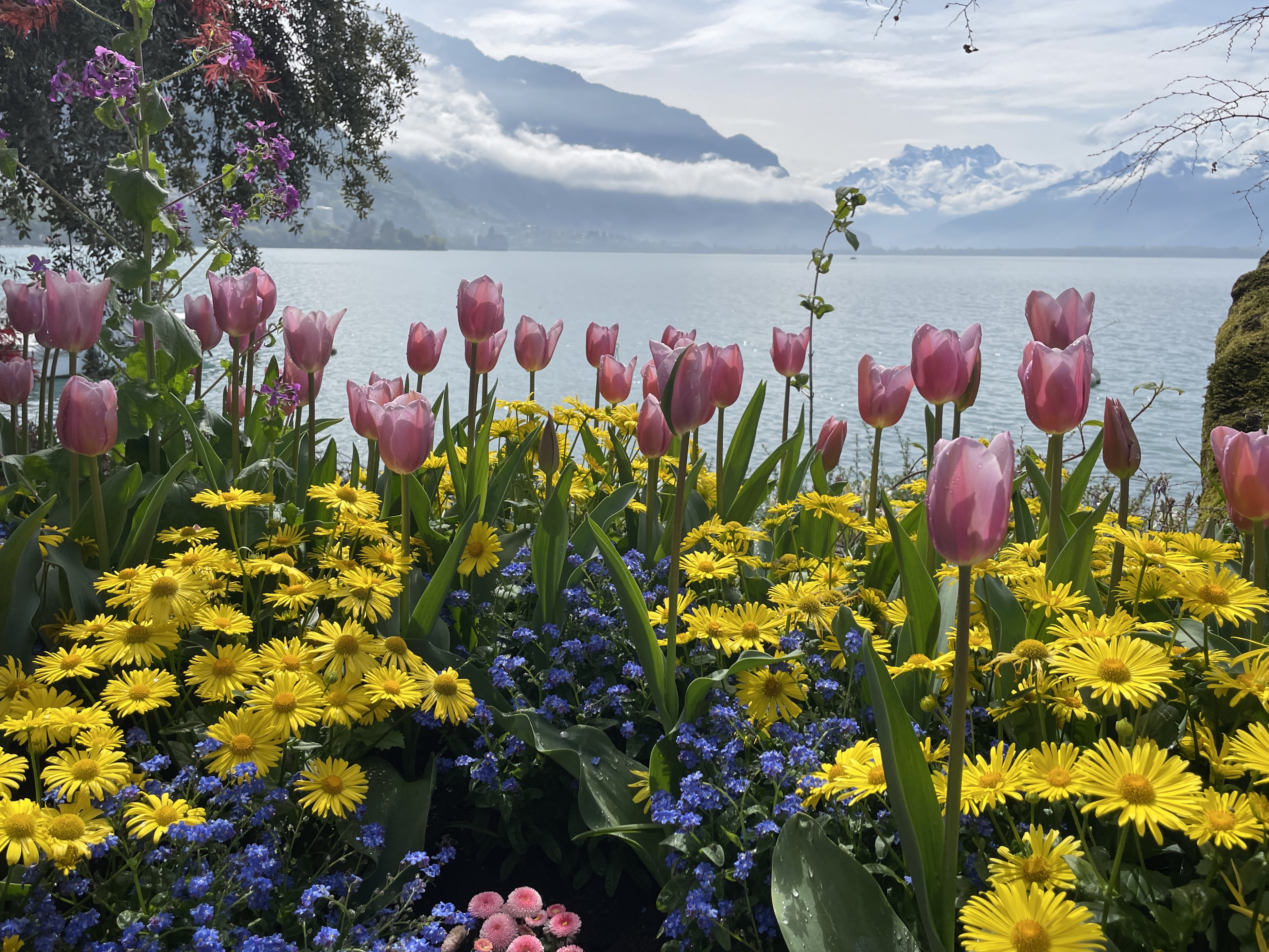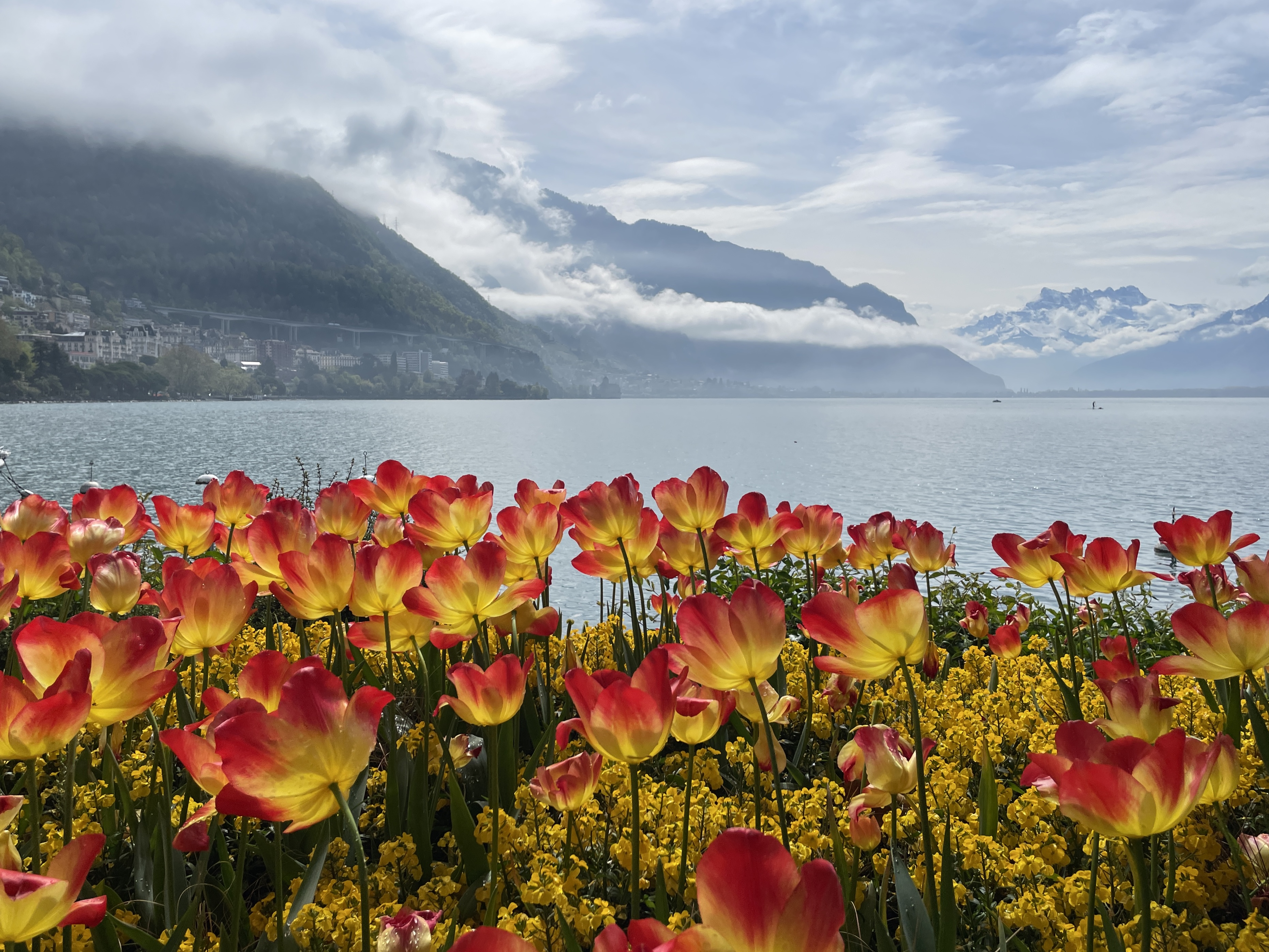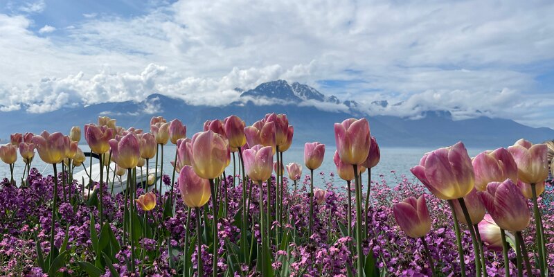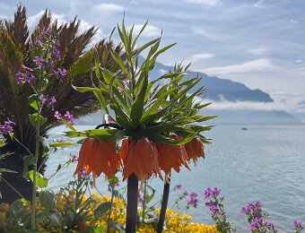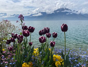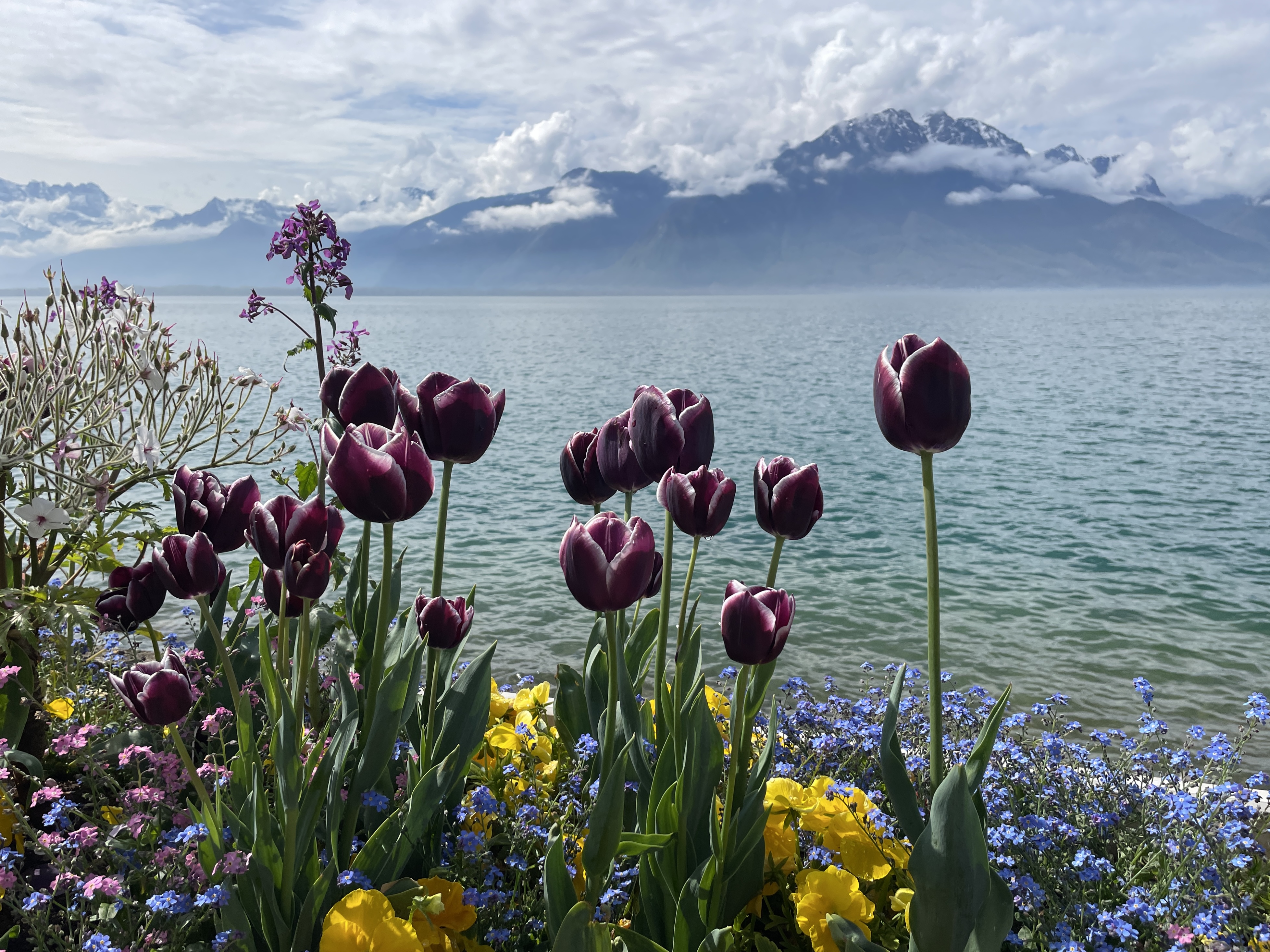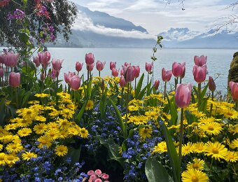 Down to the lake for a stroll along the flower beds on the quai de Montreux on the way to Lidl in Villeneuve