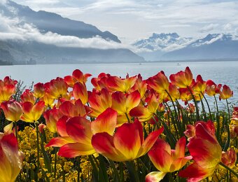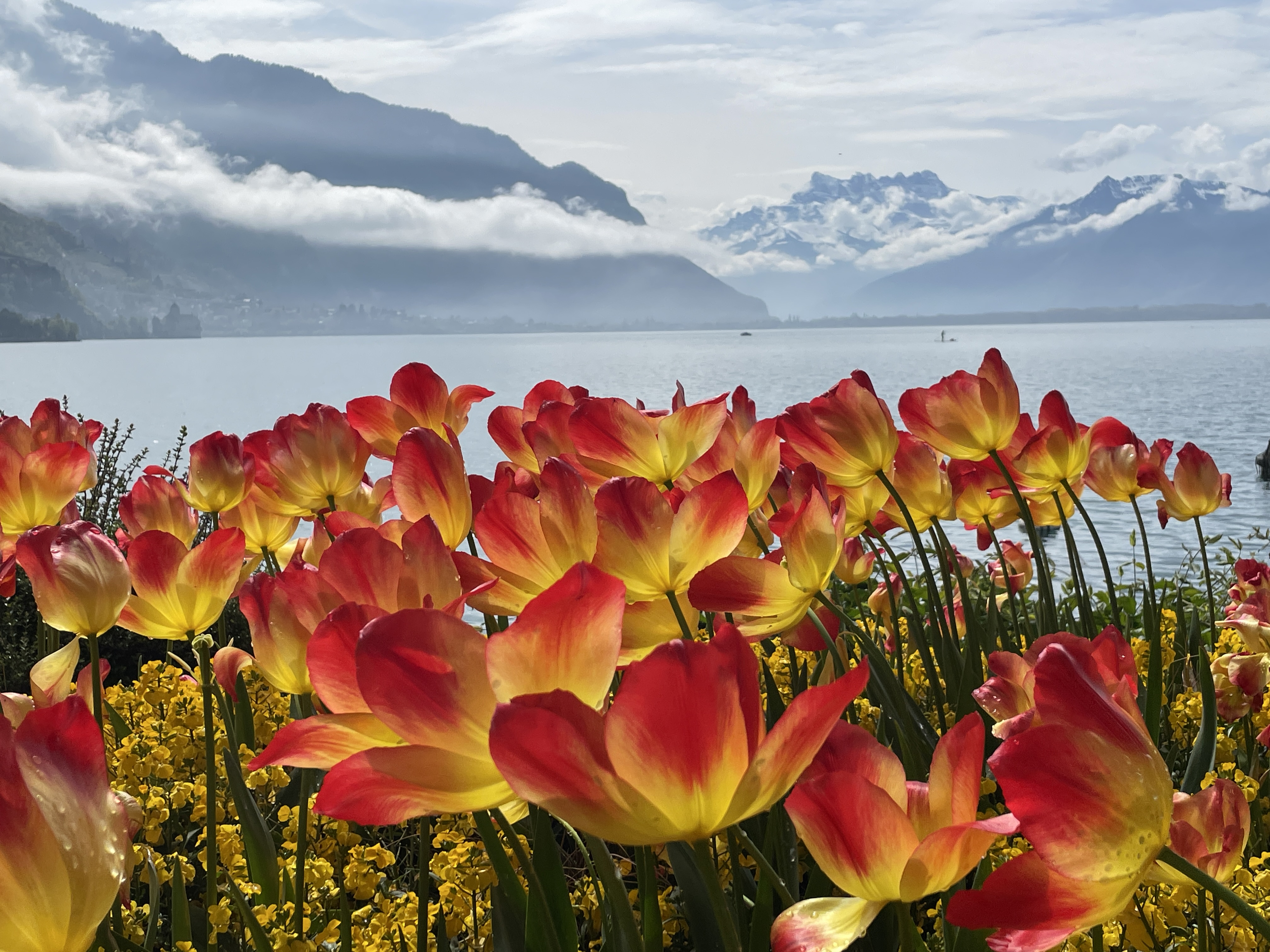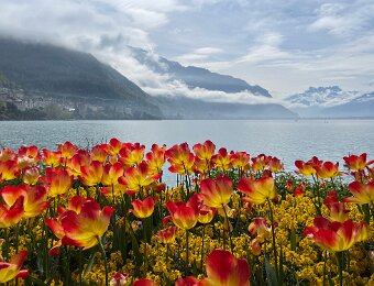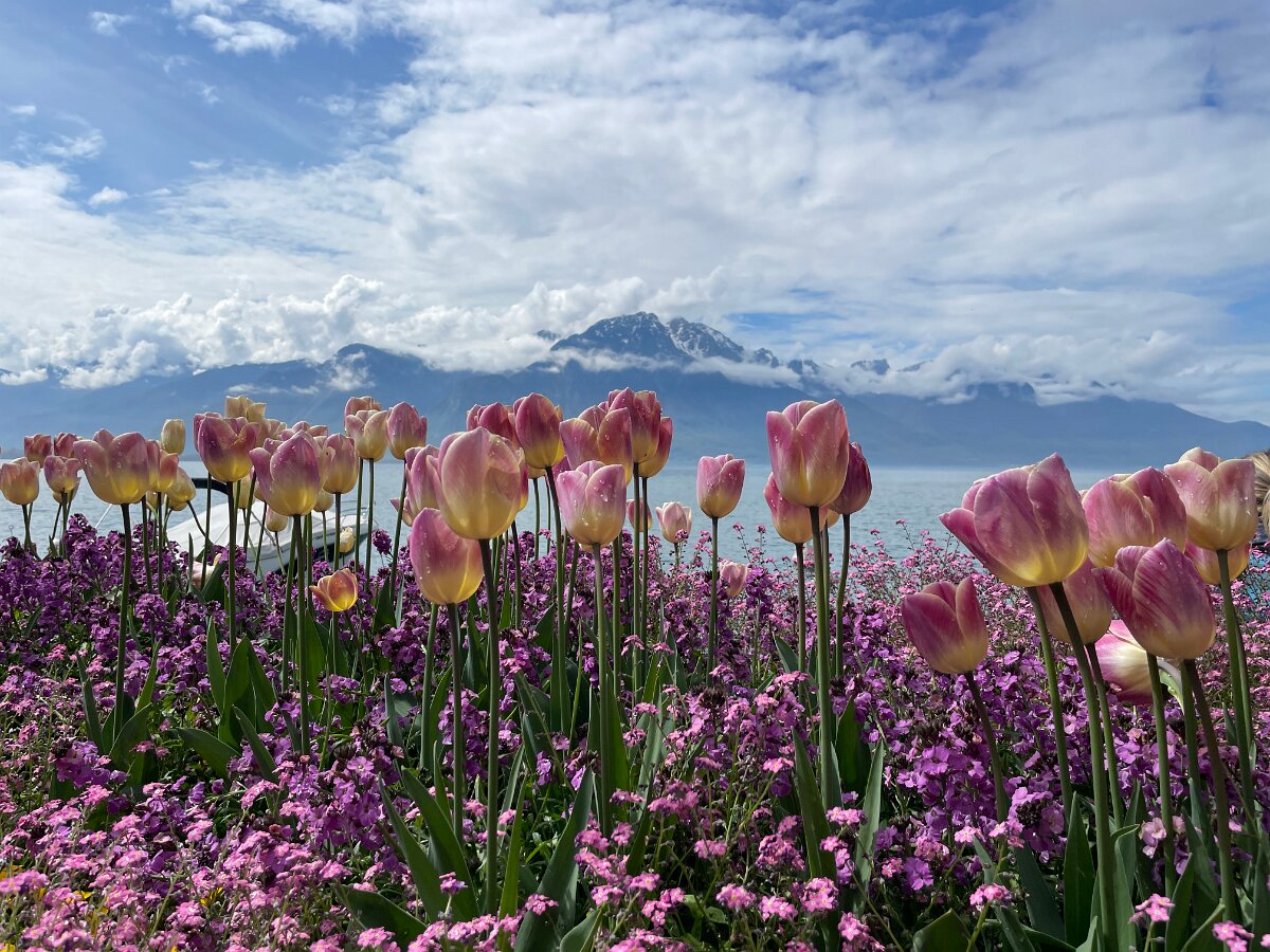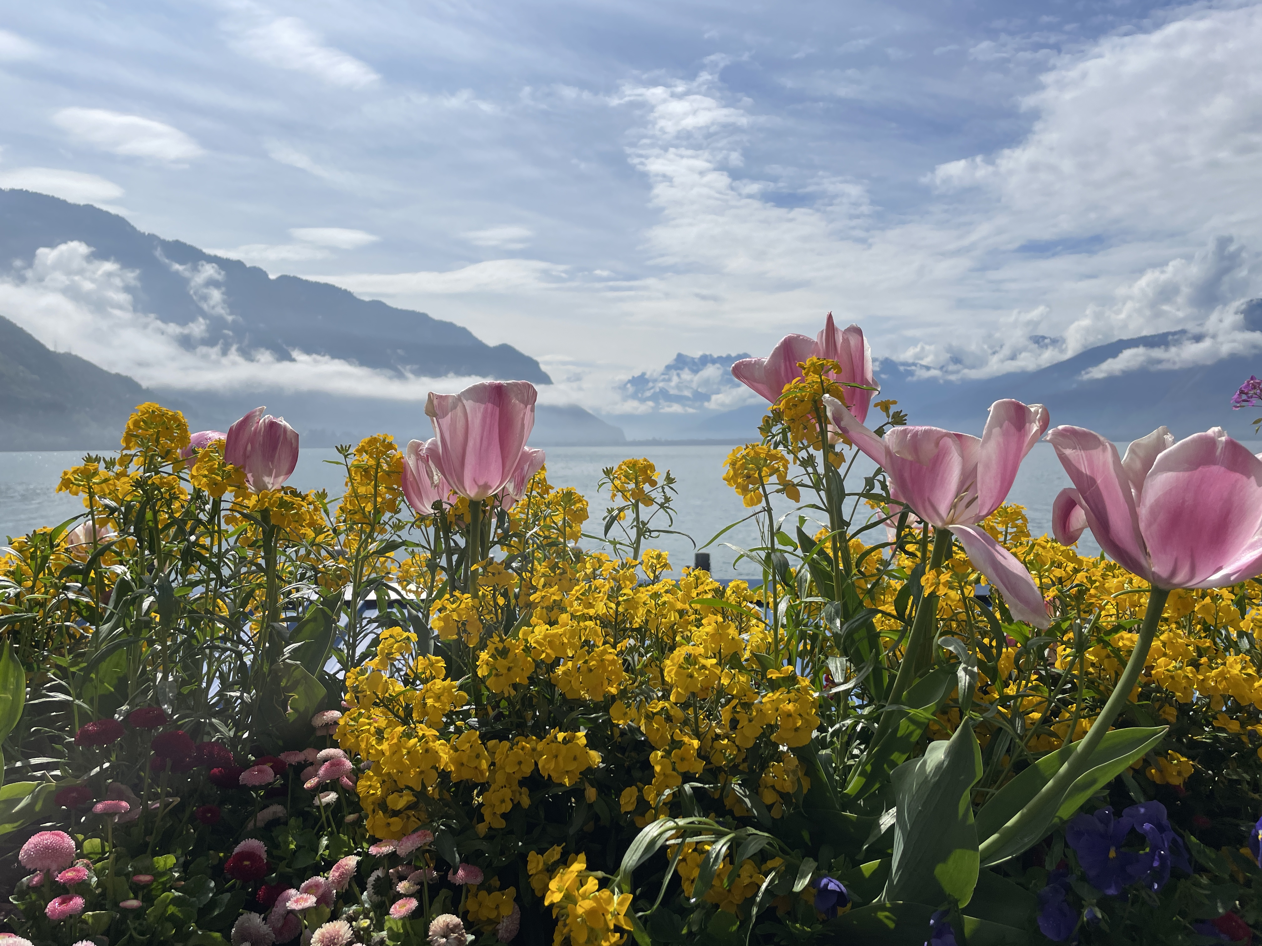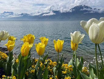 Down to the lake for a stroll along the flower beds on the quai de Montreux on the way to Lidl in Villeneuve