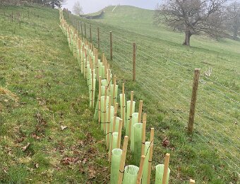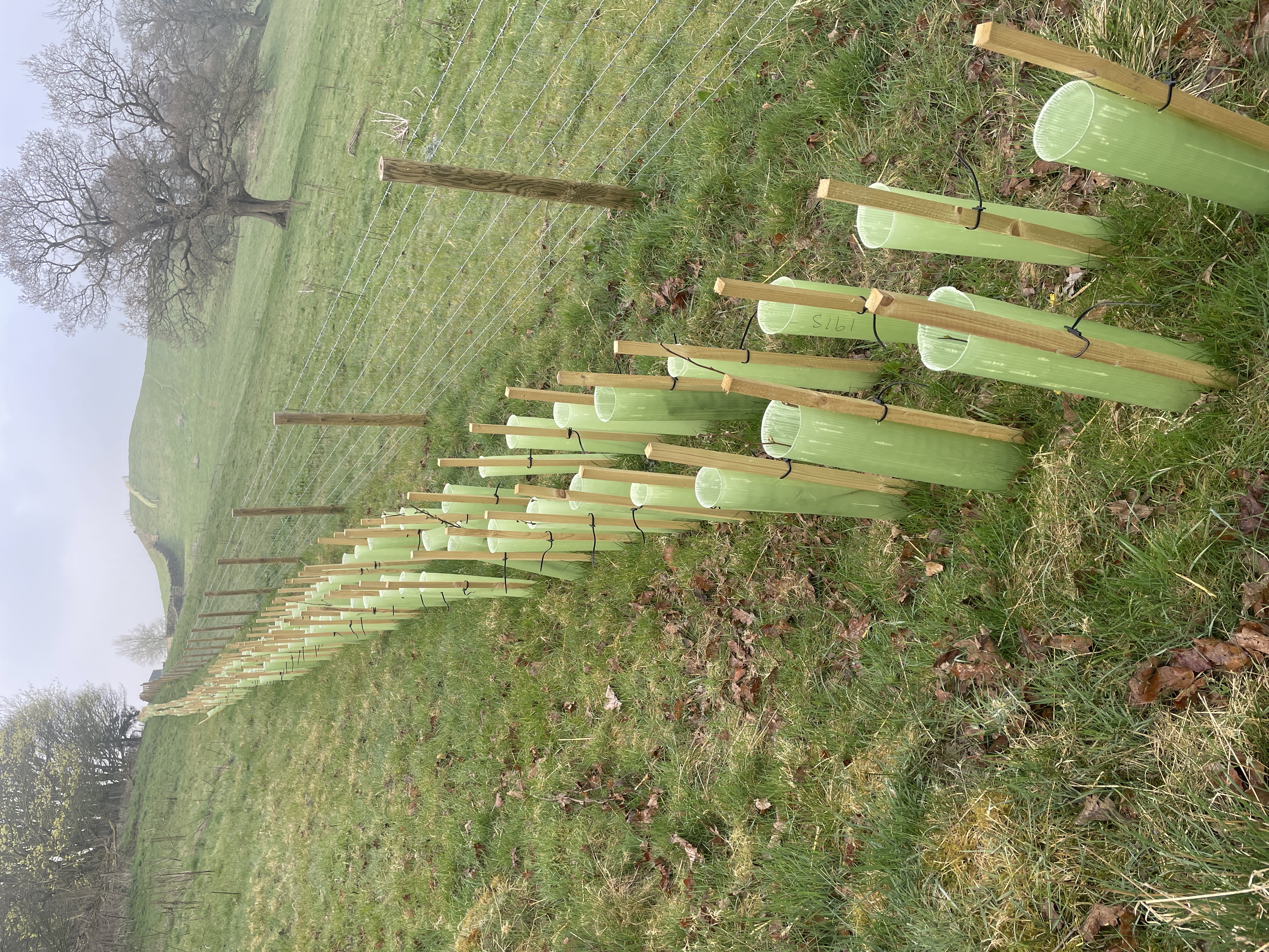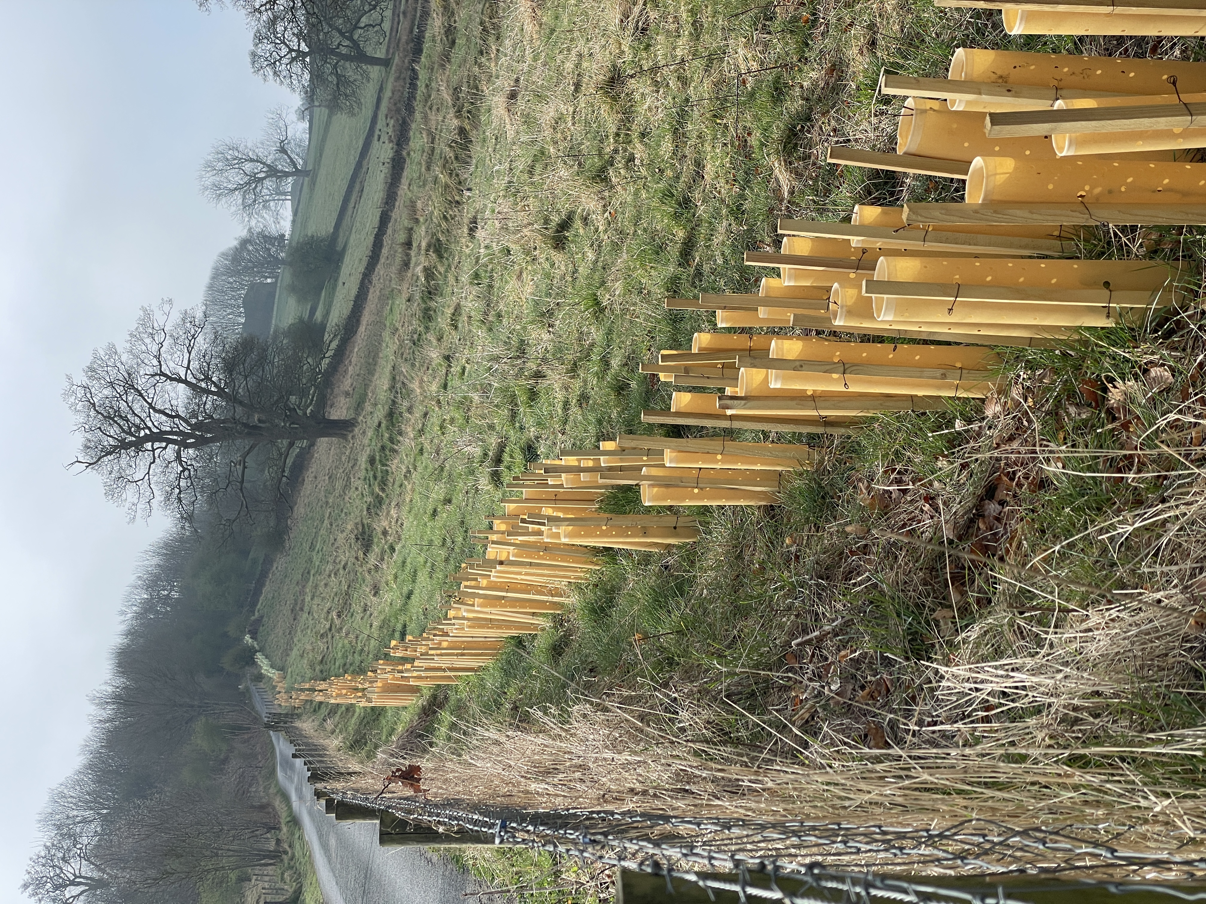 In the fog, plantings for a hedge