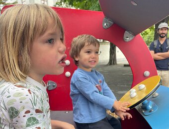 Down on the playground in Vevey, the horses are swinging