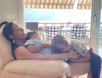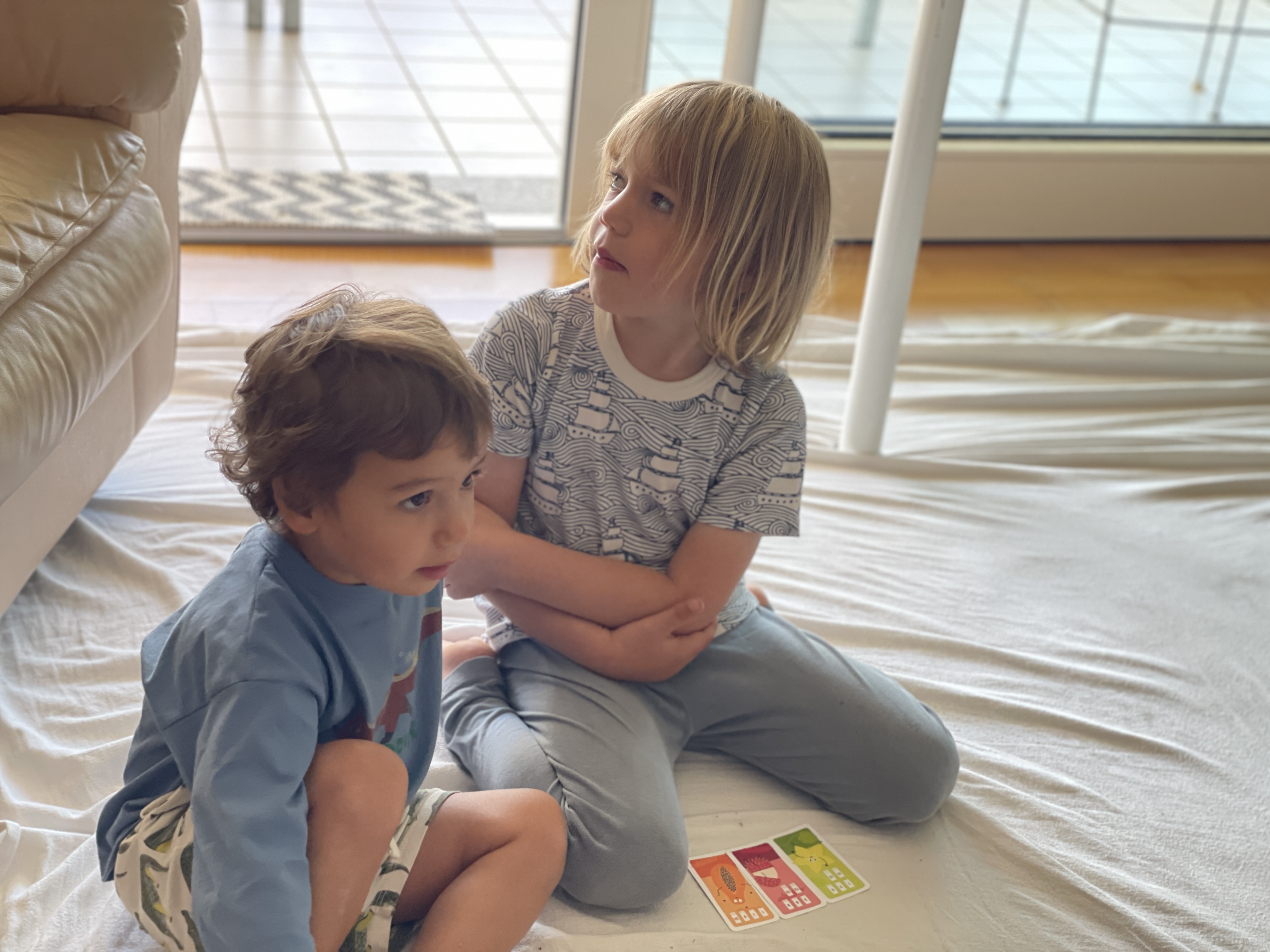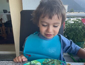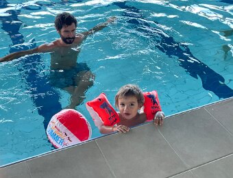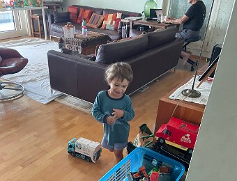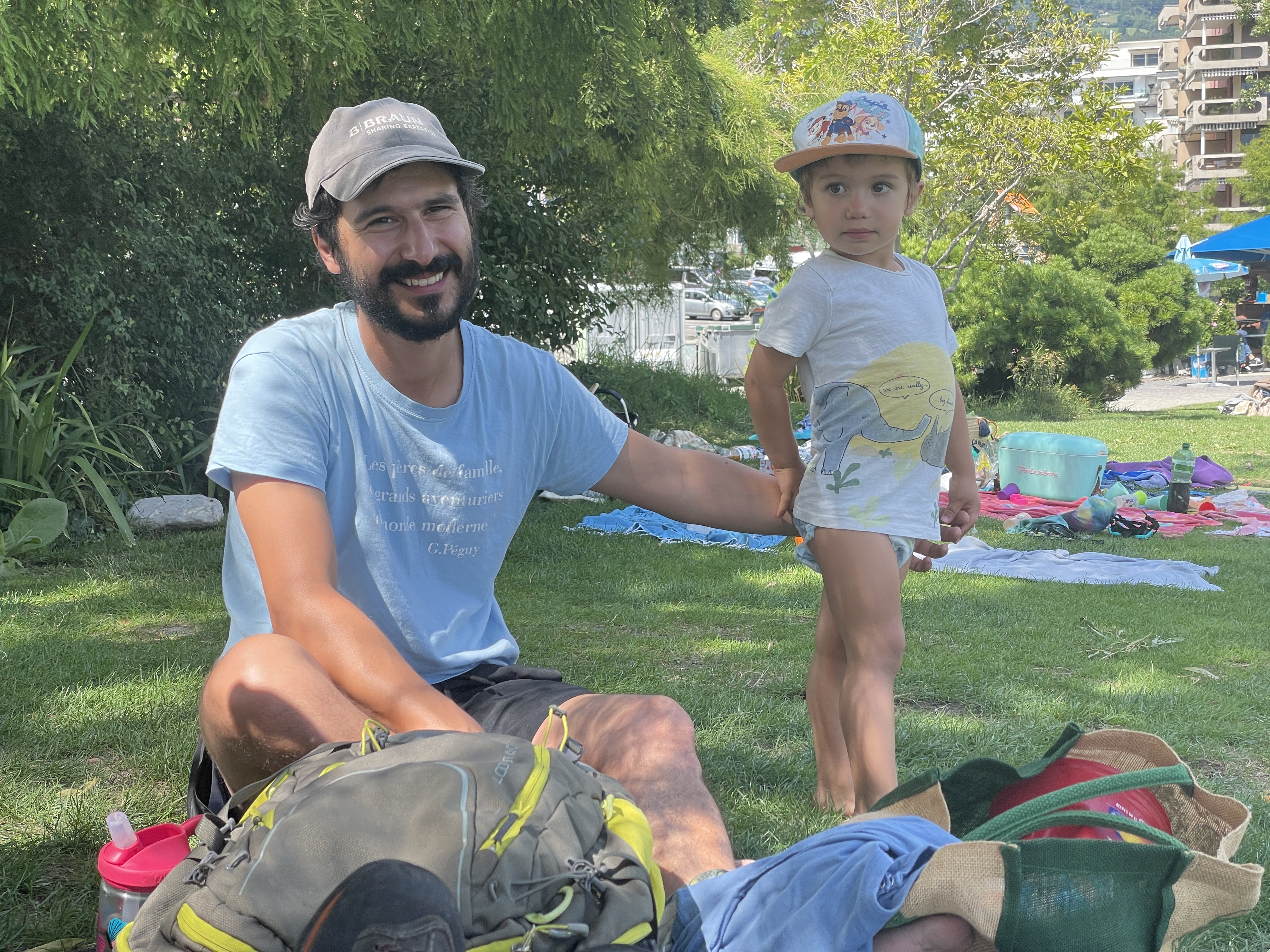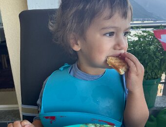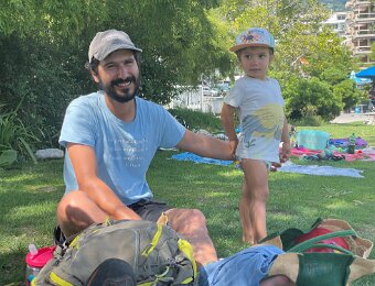 Nico is supervising Leo who wants to go play in the sand
