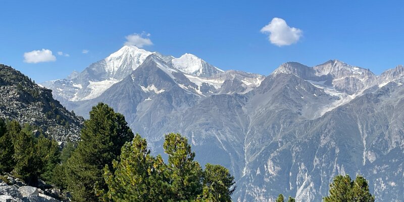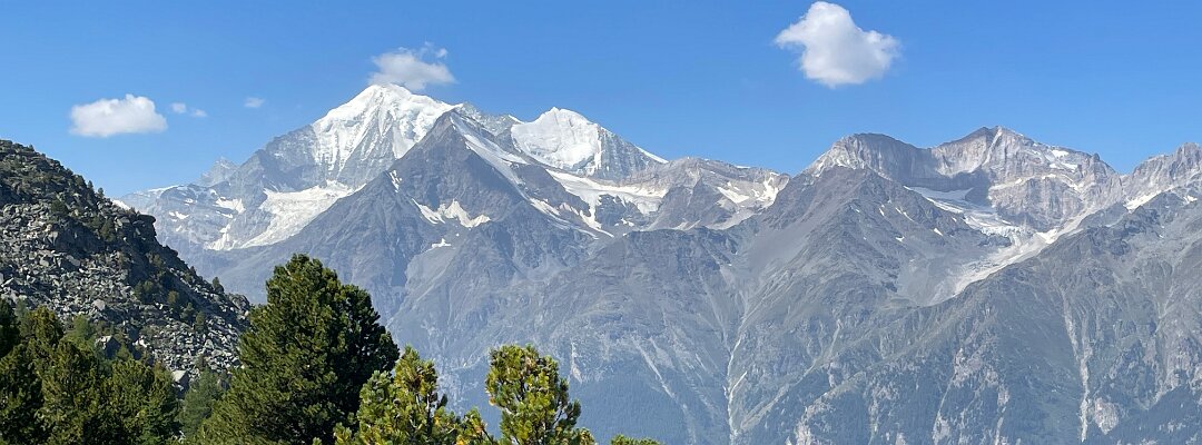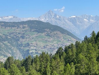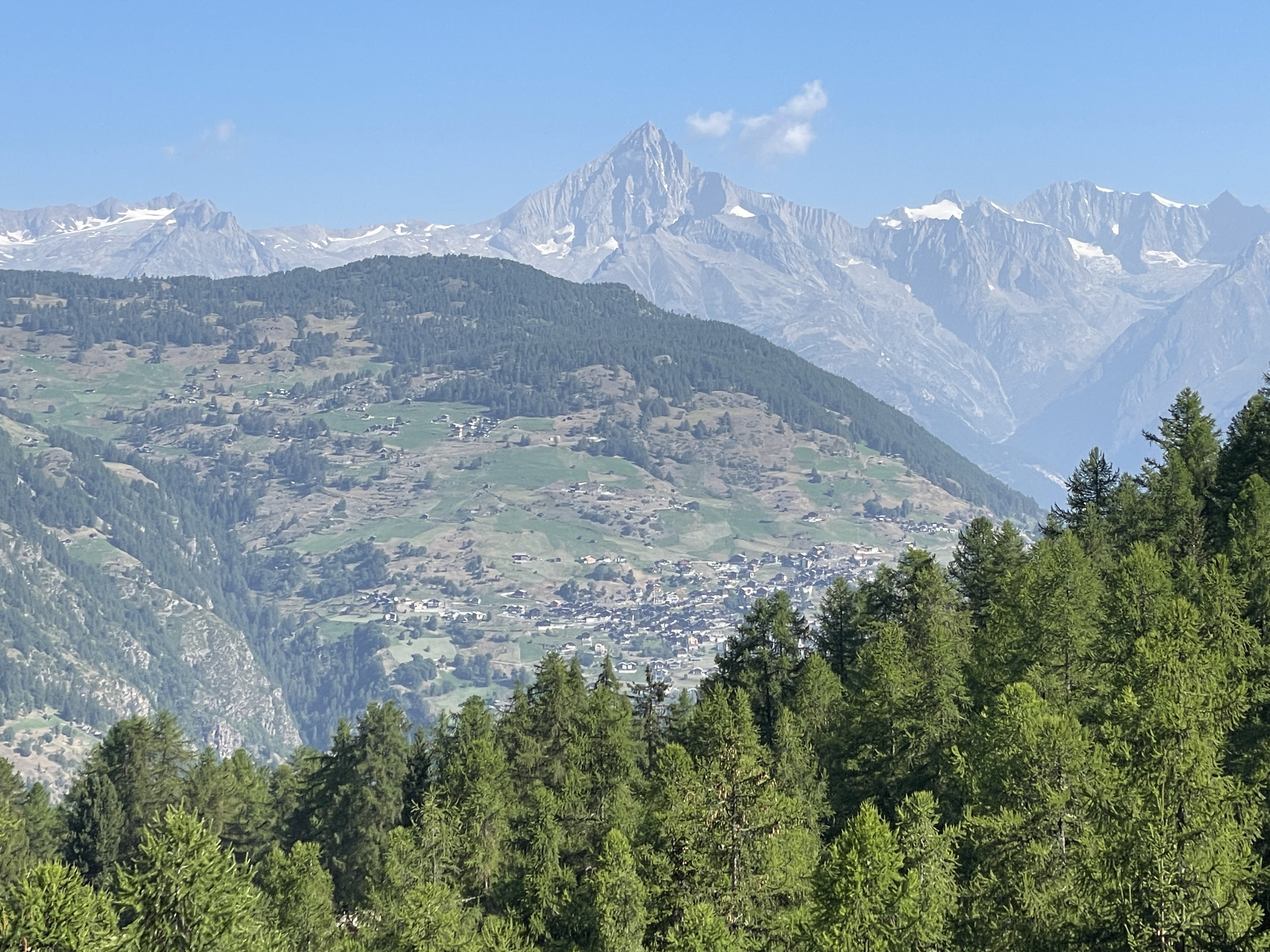 Weisshorn, Brunegghorn and Bishorn on the far side of Mattertal