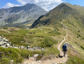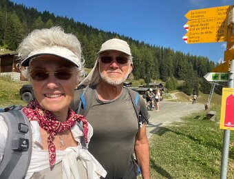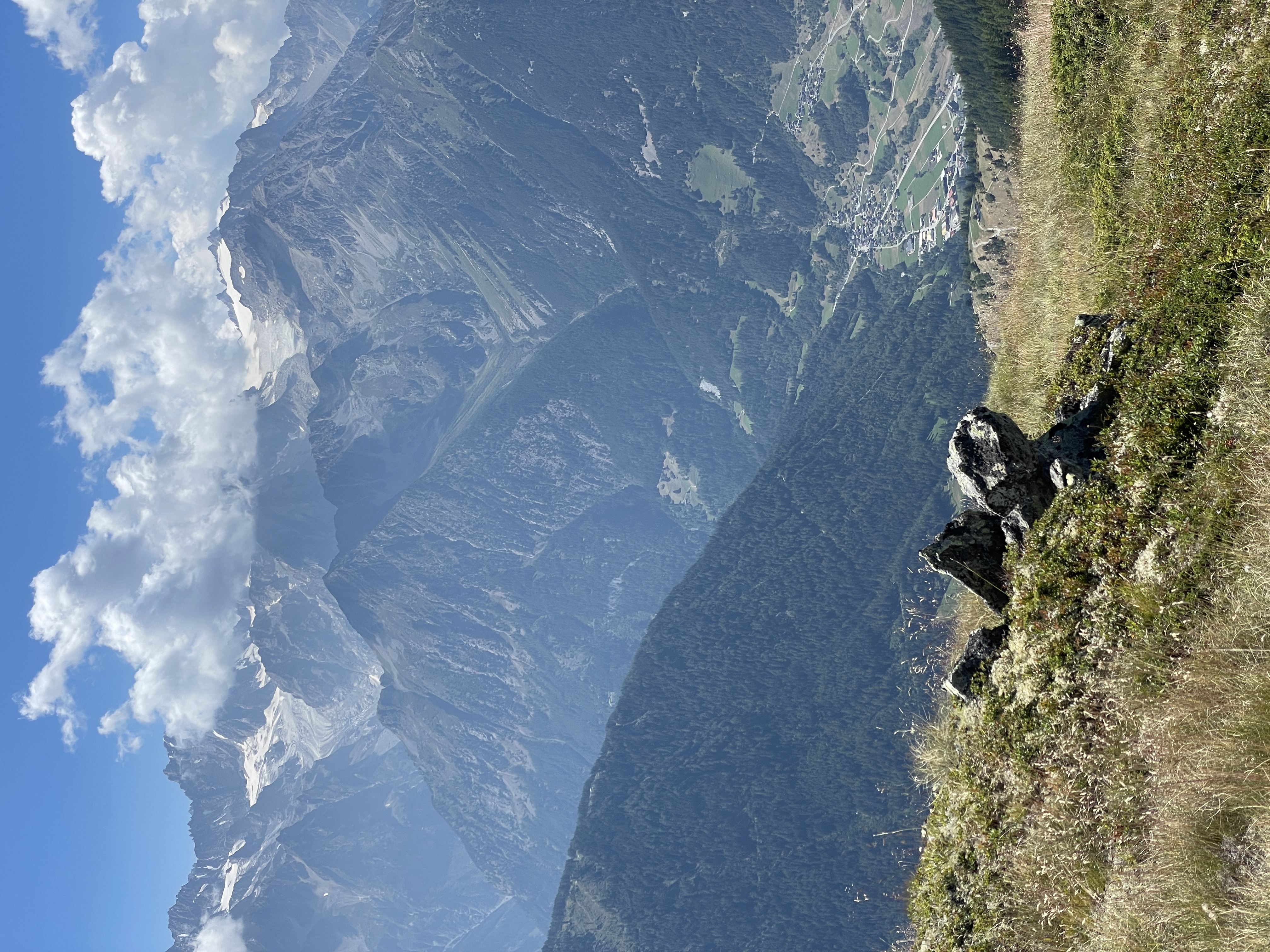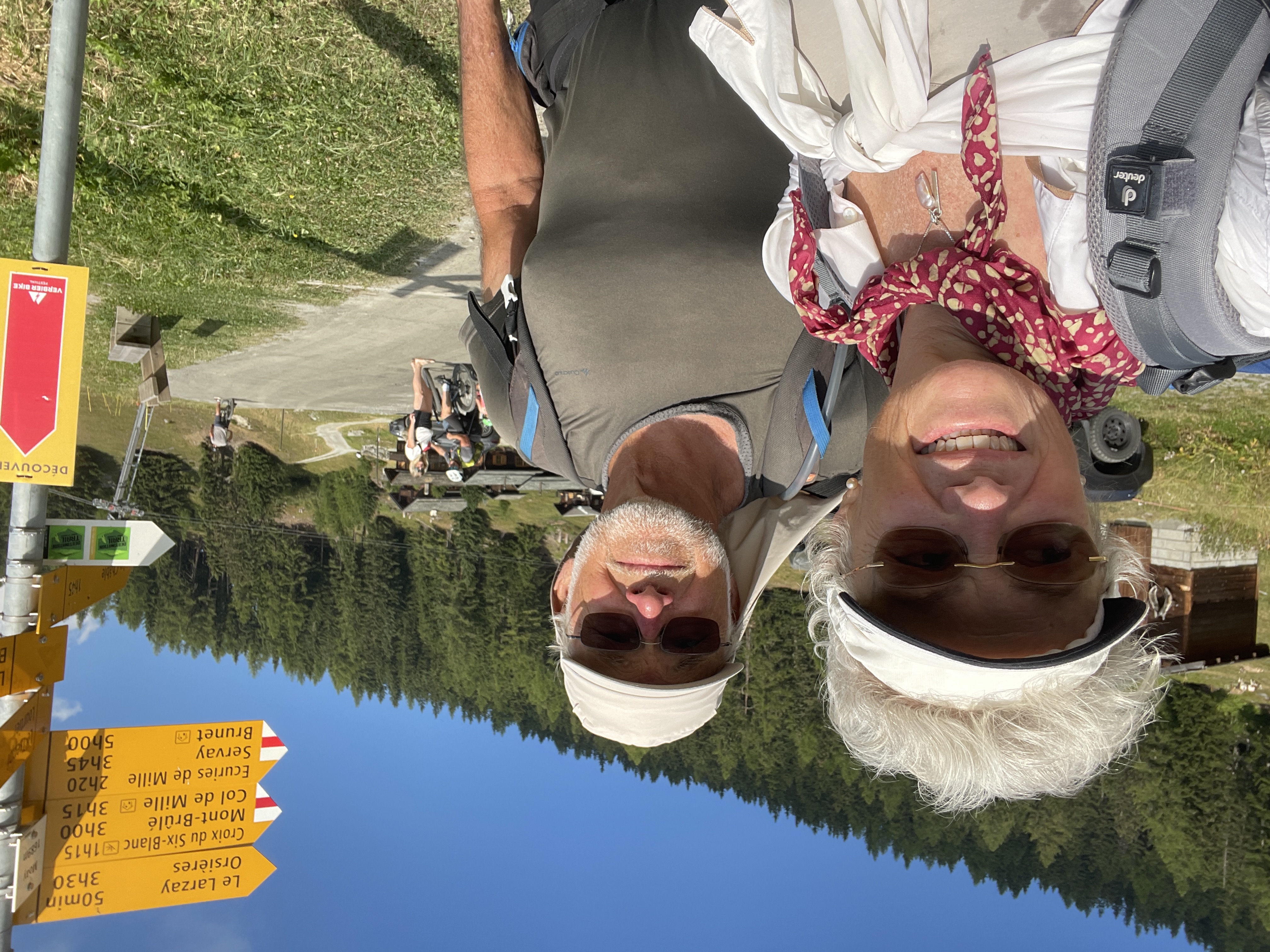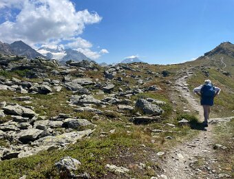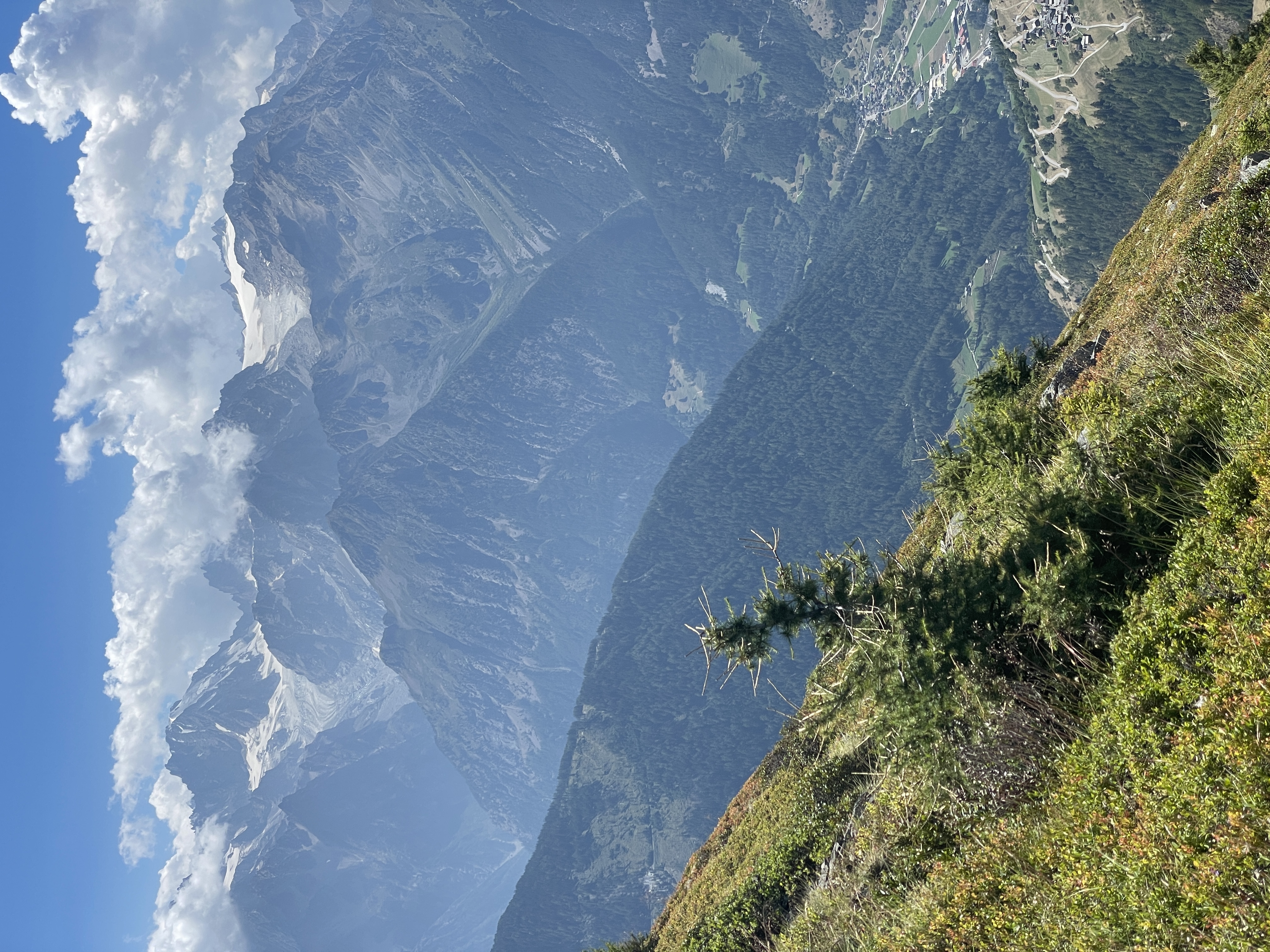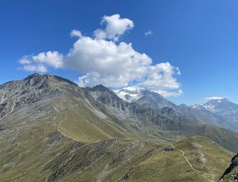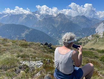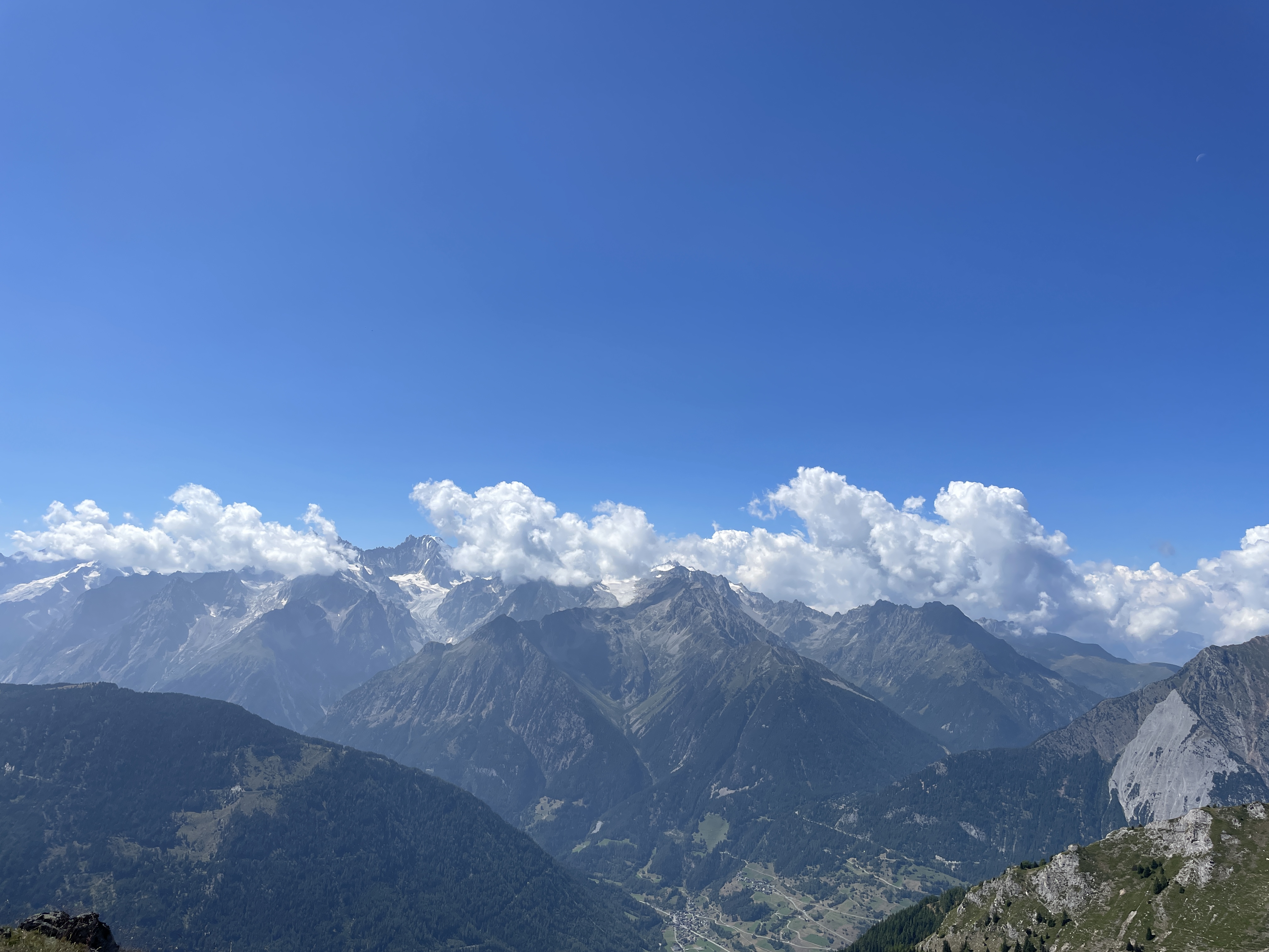 Grand Combin (L) and Mt. Vélan (r) with cairns and picnic table