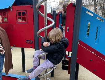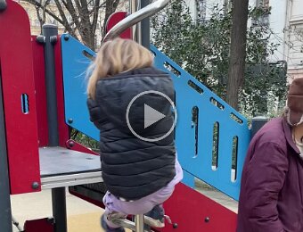 August getting the hang of this corkscrew slide