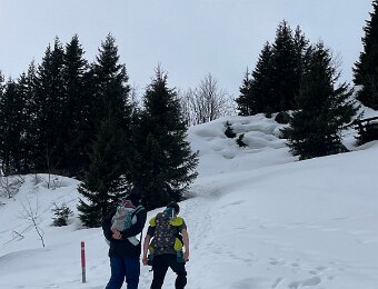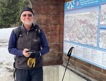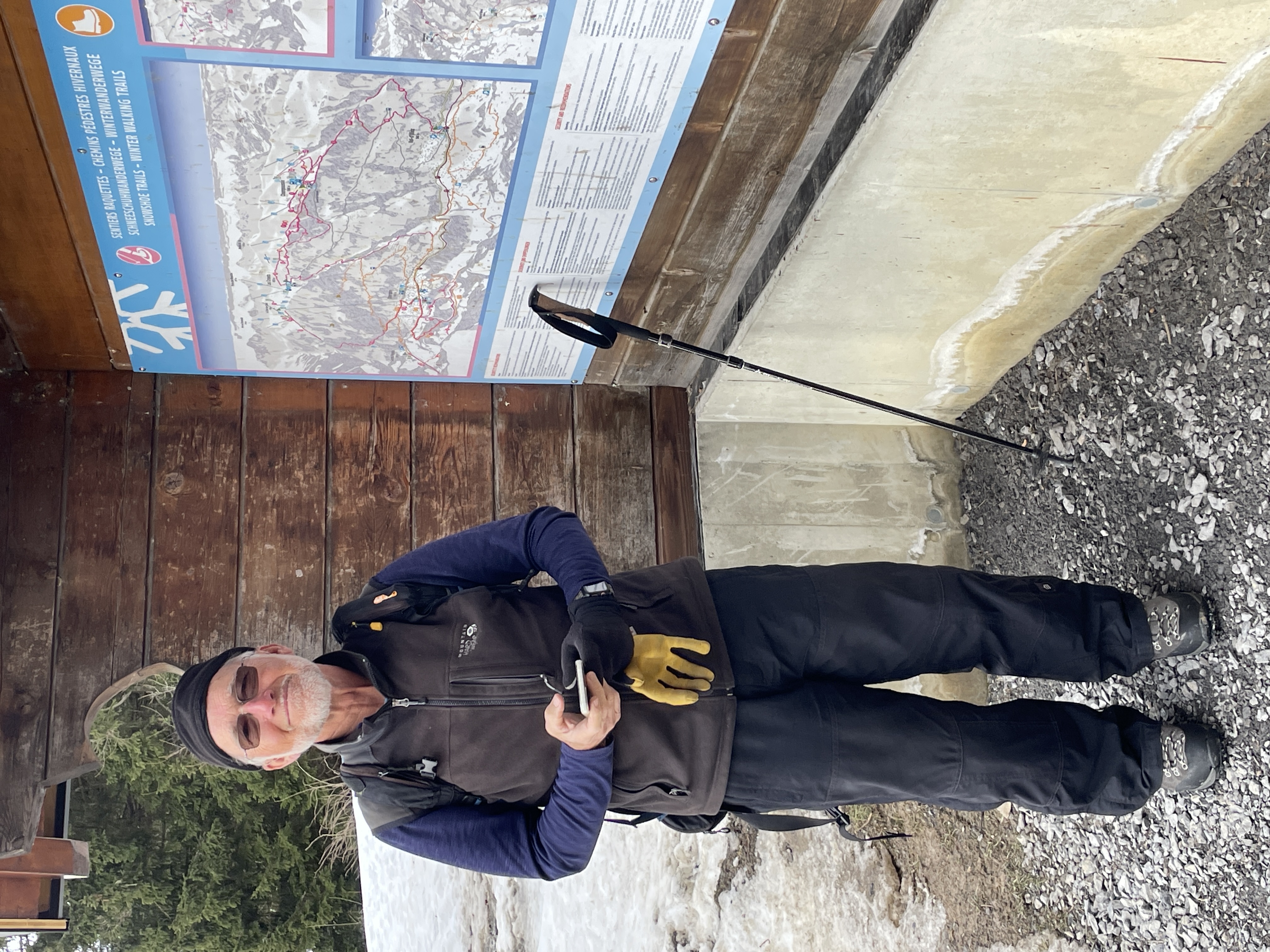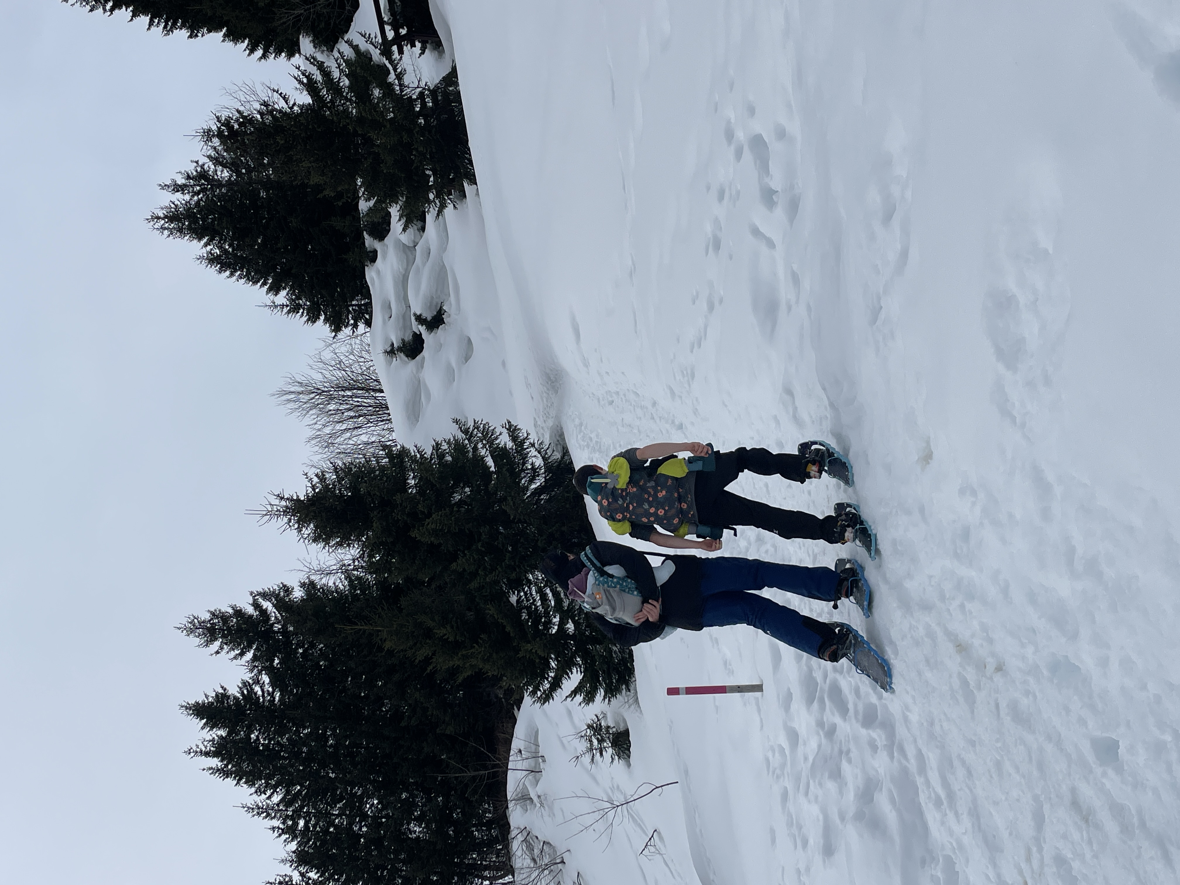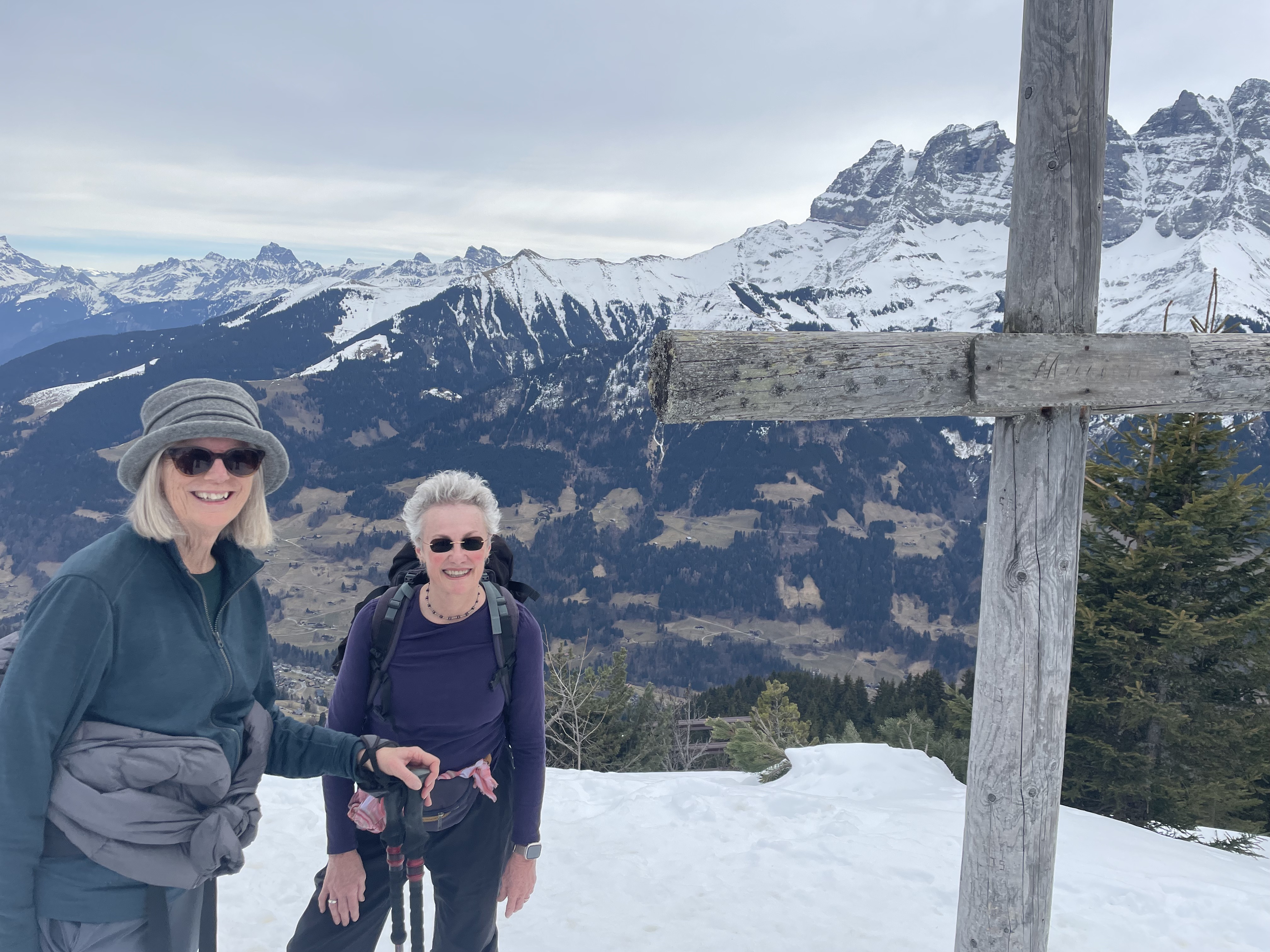 The cross we were looking for is above the benches which are buried in the snow