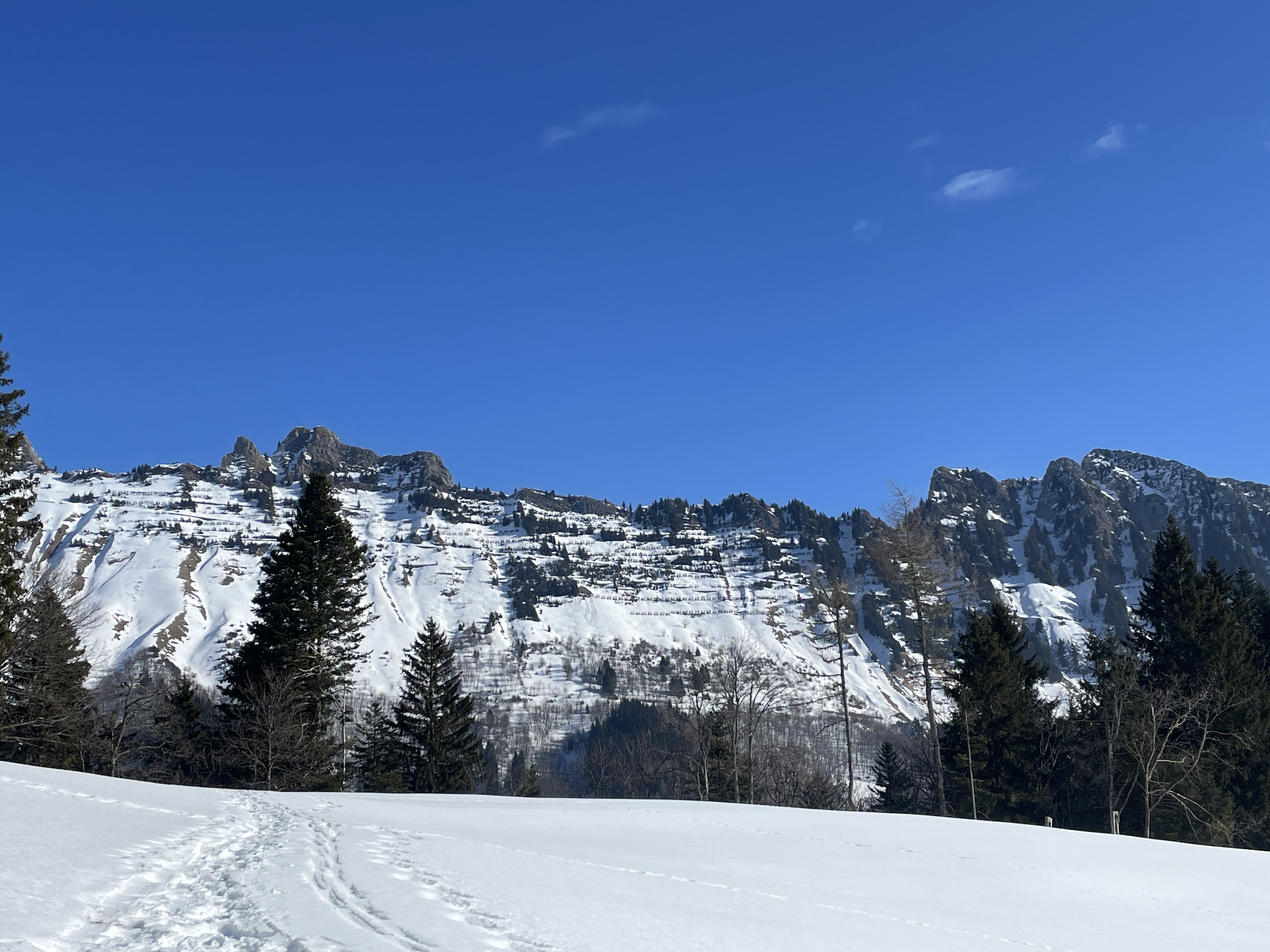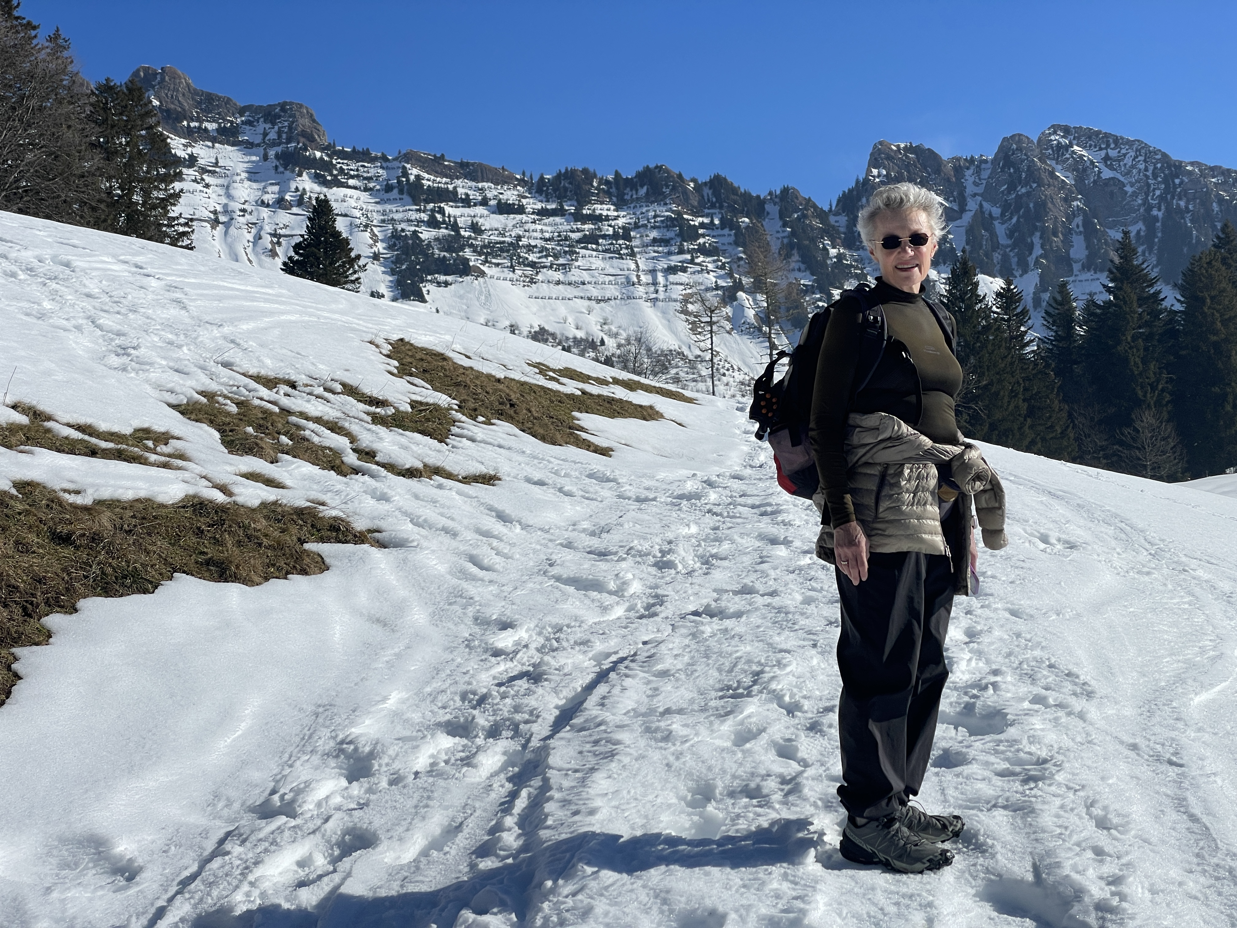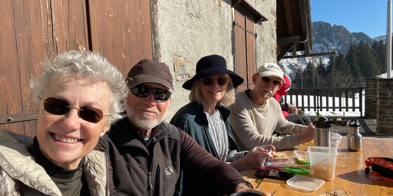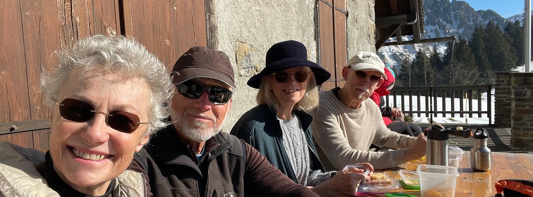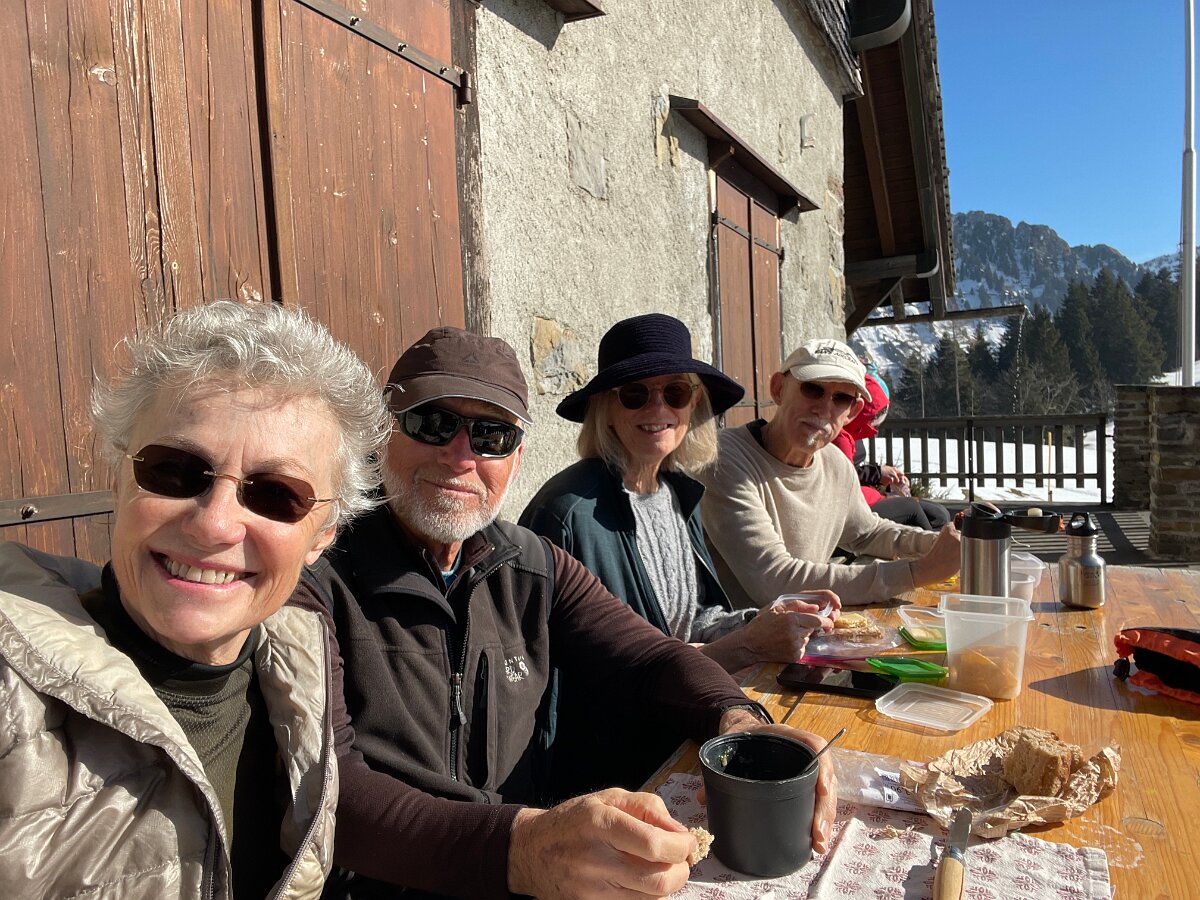 Basing our decisions on data Plotting the route At Les Avants Dent de Jaman and Les Rochers de Naye Murky air Clearer at La Planiaz Christine with les Verraux Les Verraux Looking toward Col de Jaman DIY lunch at La Planiaz Descending 6 February - Bern Ski Tour Day Four10 February Skiing Mont Noble