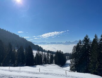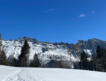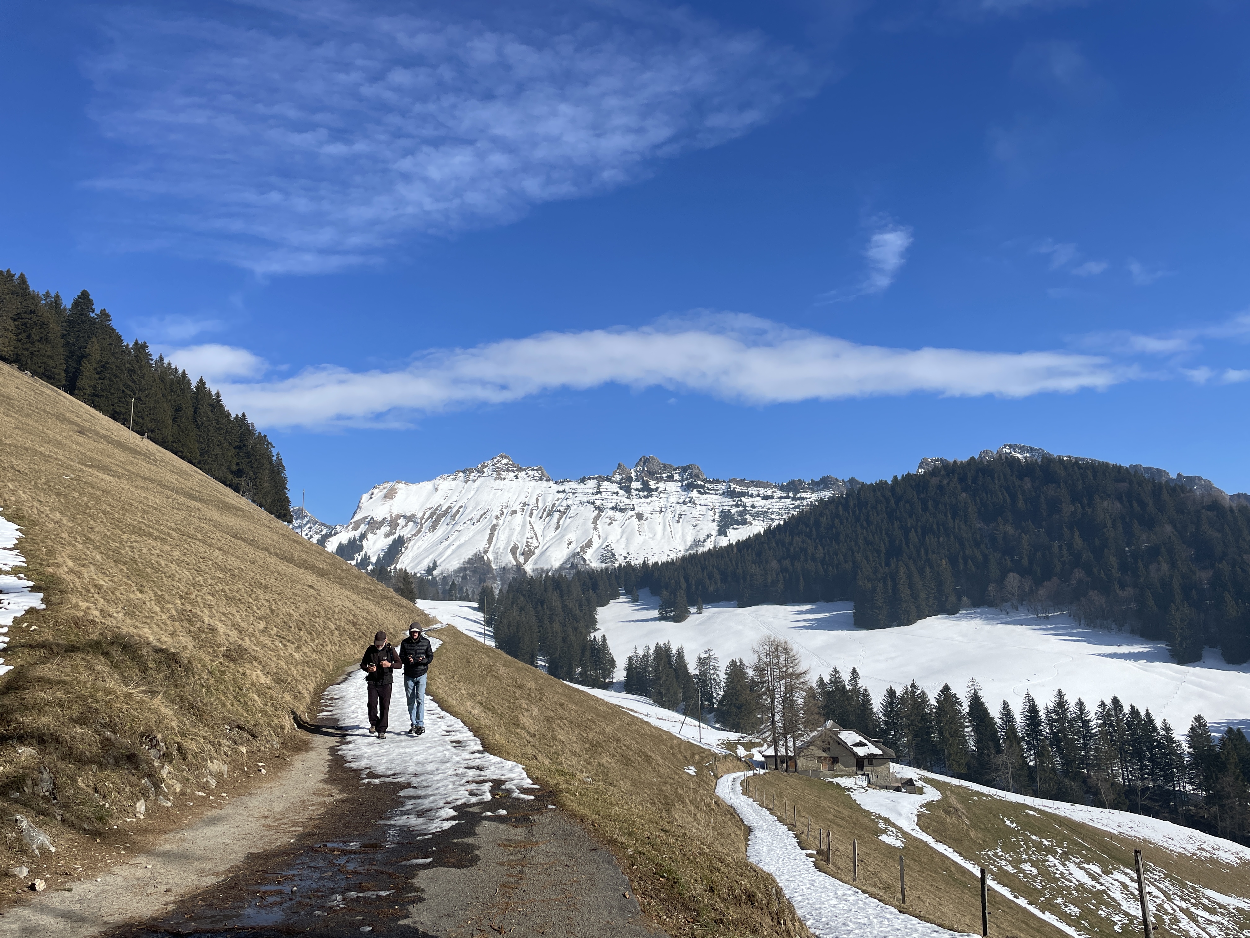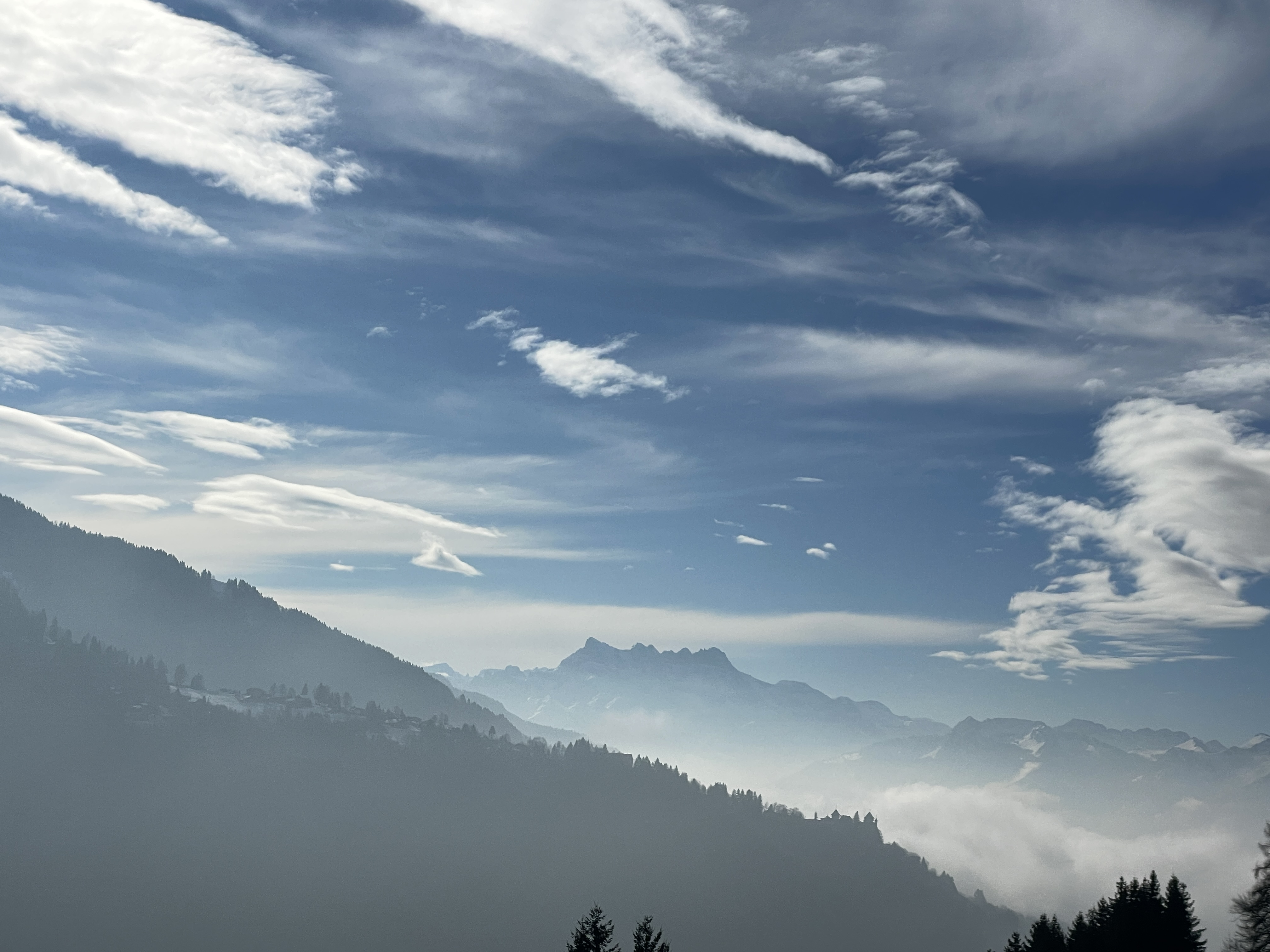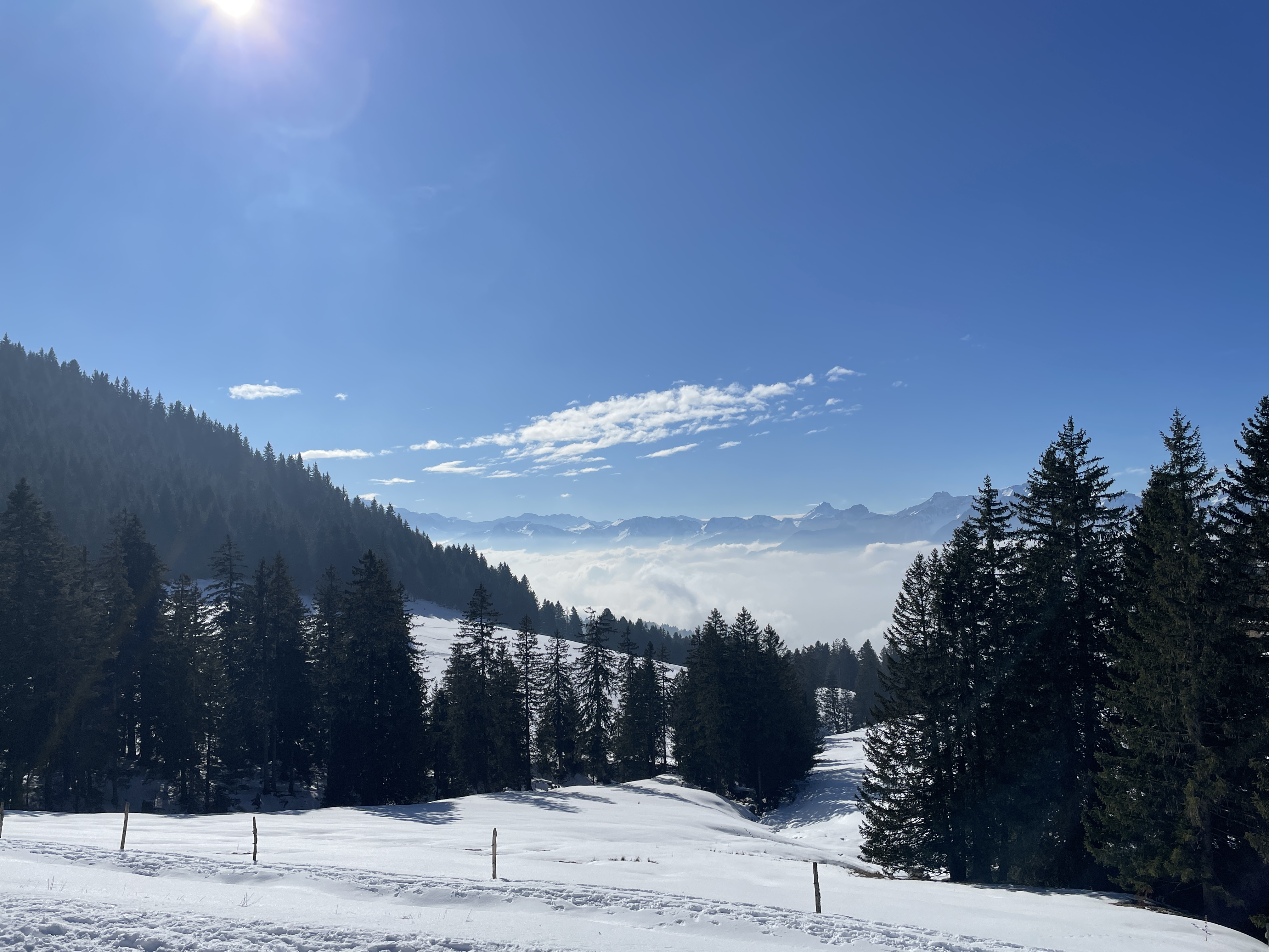Basing our decisions on data Plotting the route At Les Avants Dent de Jaman and Les Rochers de Naye Murky air Clearer at La Planiaz Christine with les Verraux Les Verraux Looking toward Col de Jaman DIY lunch at La Planiaz Descending 6 February - Bern Ski Tour Day Four10 February Skiing Mont Noble