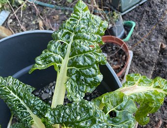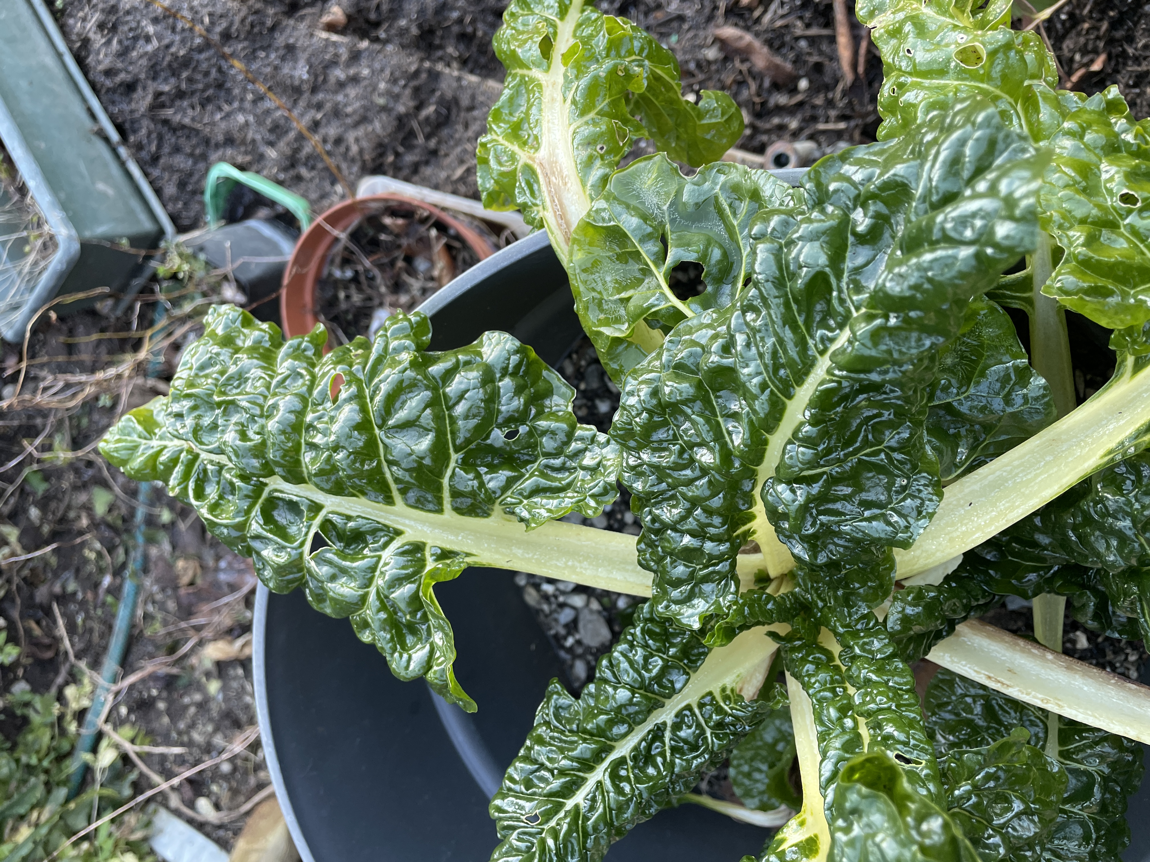 The night before this trip, a hard freeze hit the garden. Swiss chard leaves are crispy!